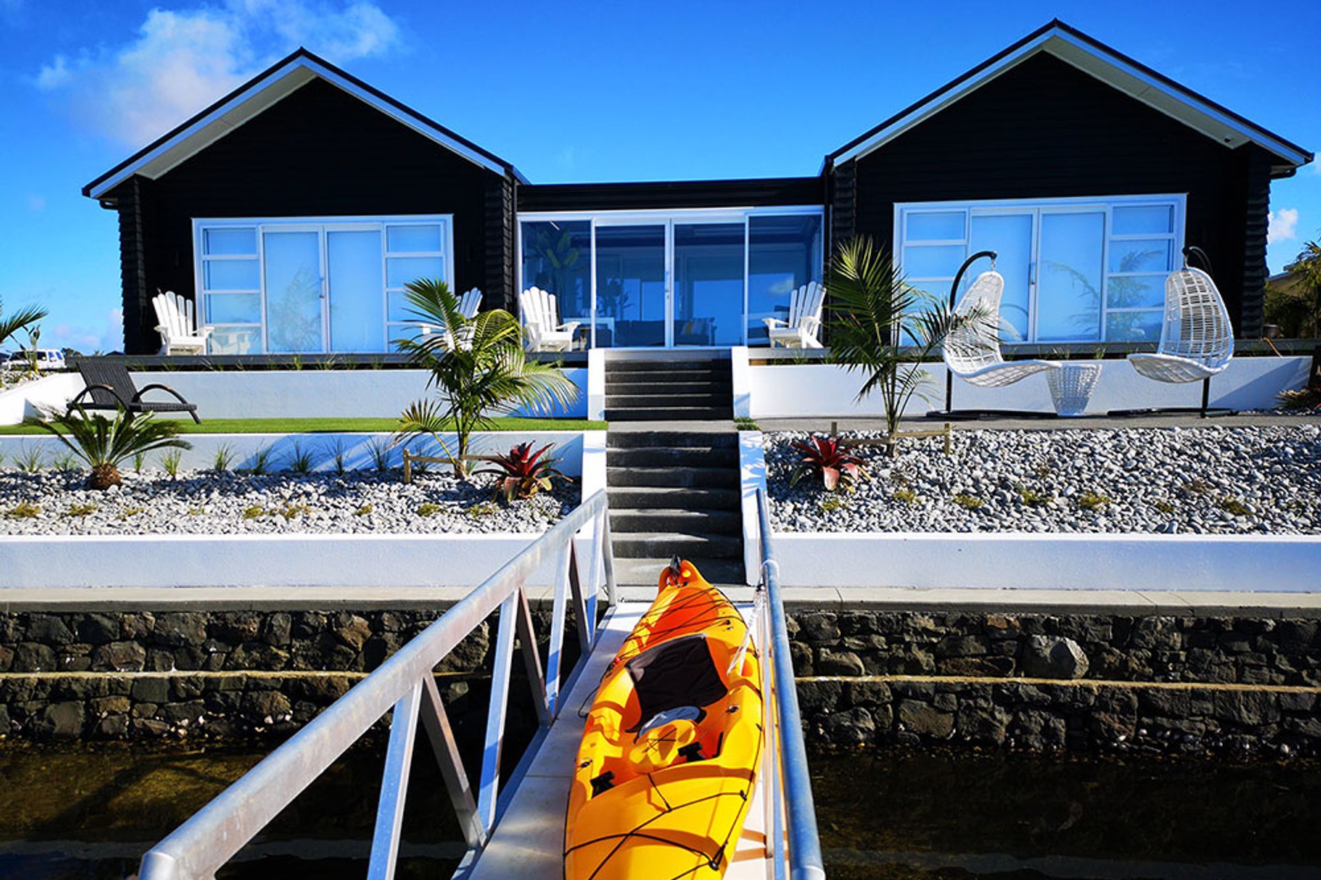 ArchiPro Project Summary - A contemporary waterfront landscape in Northland, completed in 2018, featuring terraced spaces, a versatile outdoor area, and a harmonious blend of tropical planting that enhances the connection between the home and the marina.
