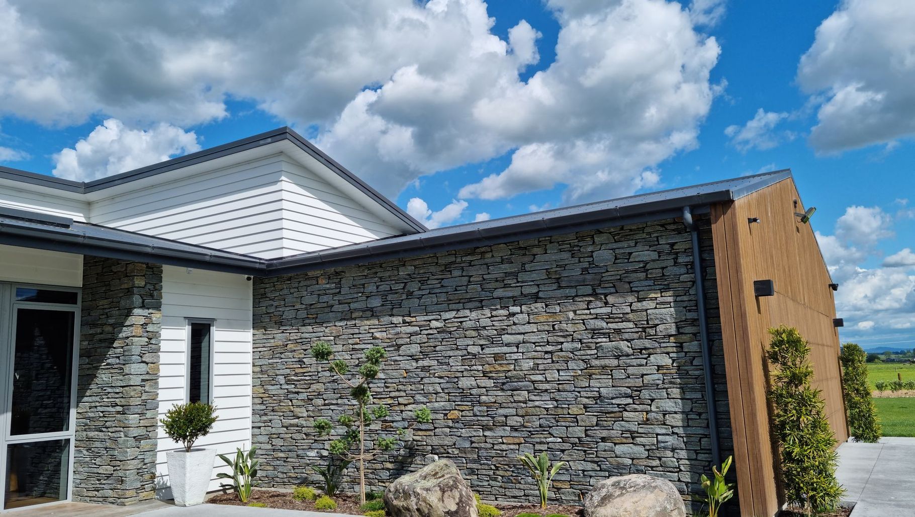 ArchiPro Project Summary - Morrinsville project showcases expert stonemasonry with durable Gibbston schist, featuring elegant walls and fireplaces crafted with precision, completed in 2022.