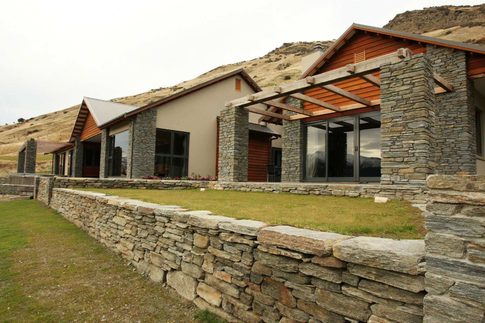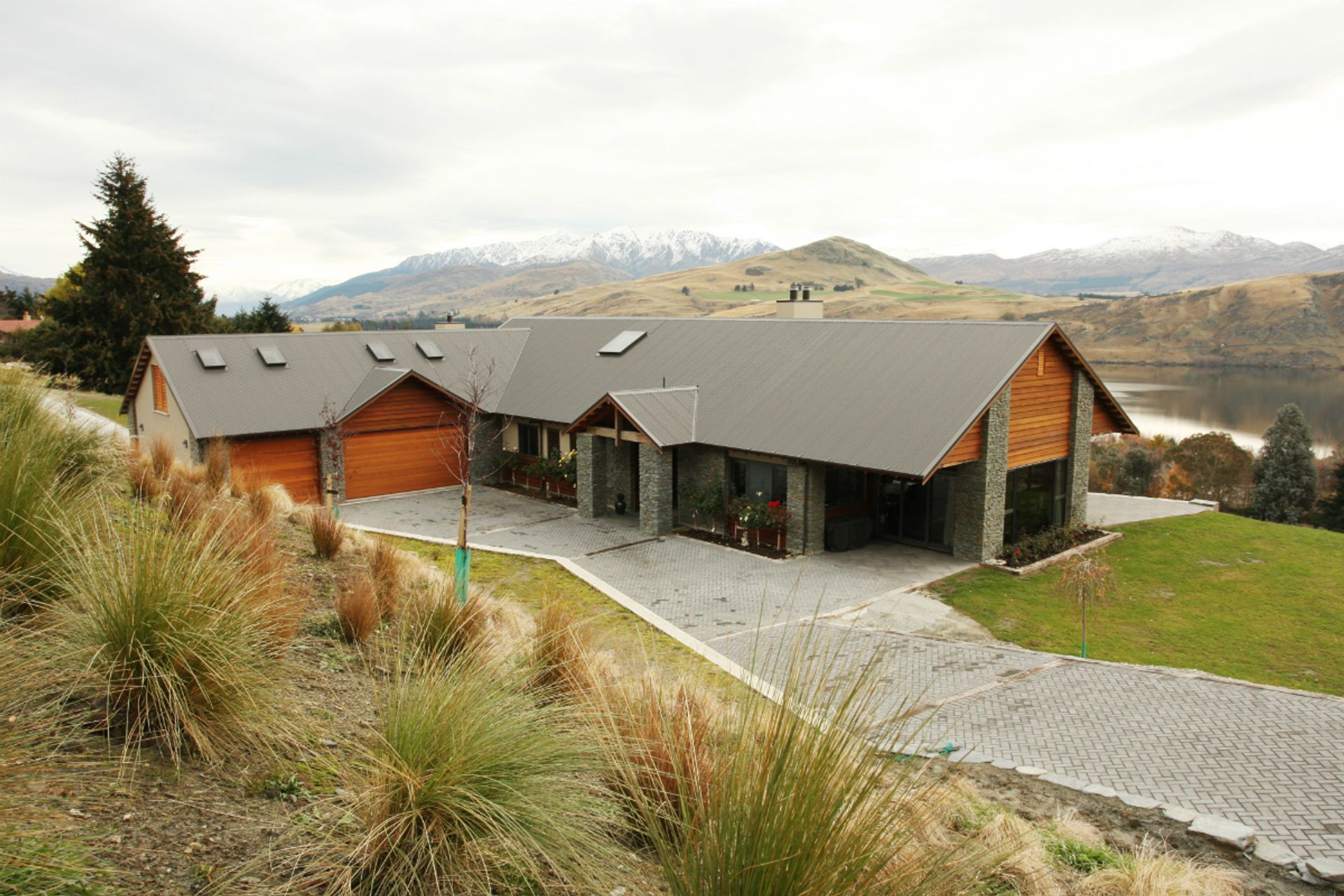 ArchiPro Project Summary - Traditional home with natural timber cladding, featuring hardwood beams and a luxury 2-bedroom home stay apartment, perfectly situated above Lake Hayes.