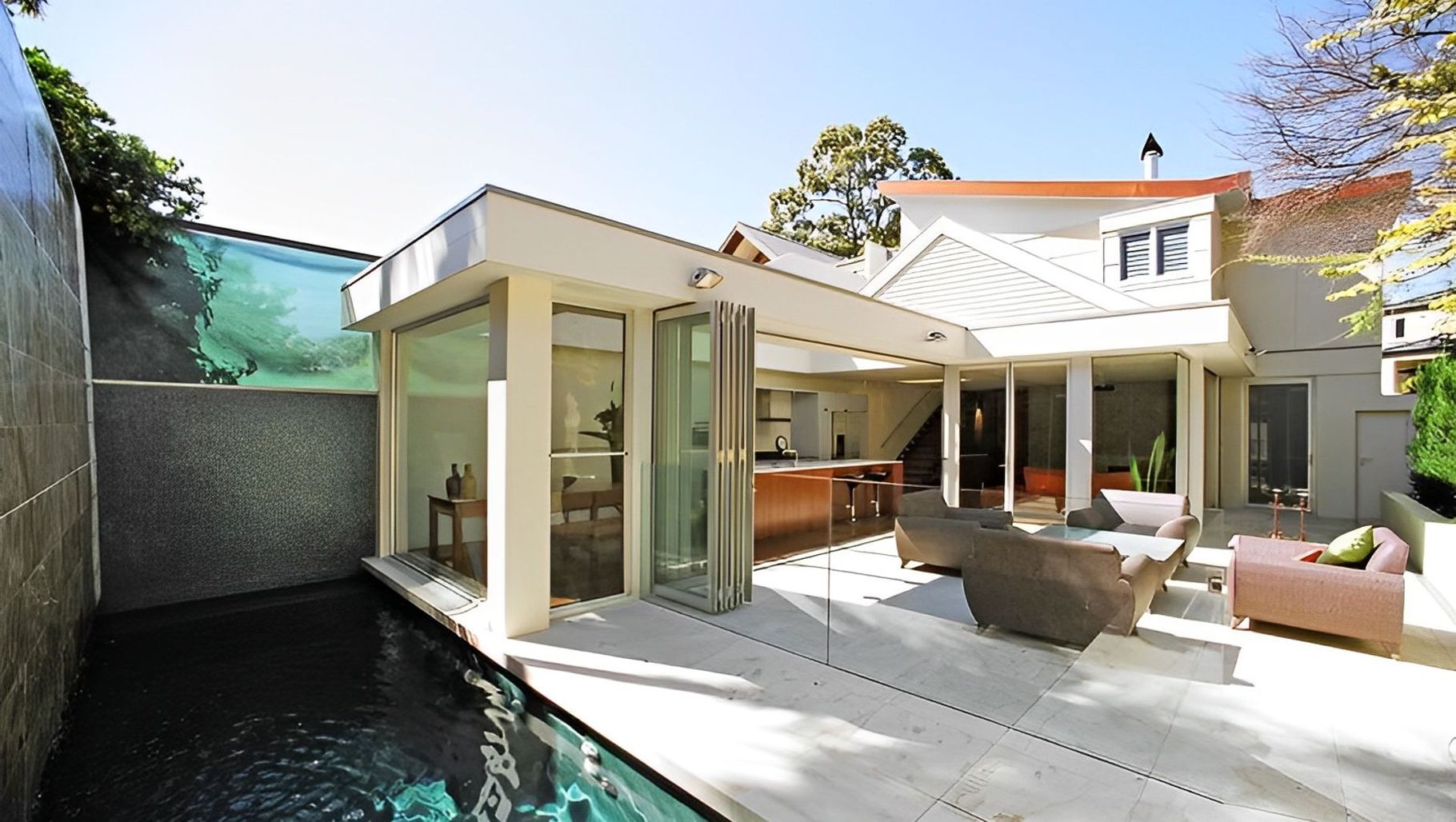 ArchiPro Project Summary - Custom new build in Mosman featuring a stunning pool and innovative glass roof, completed in 2006.