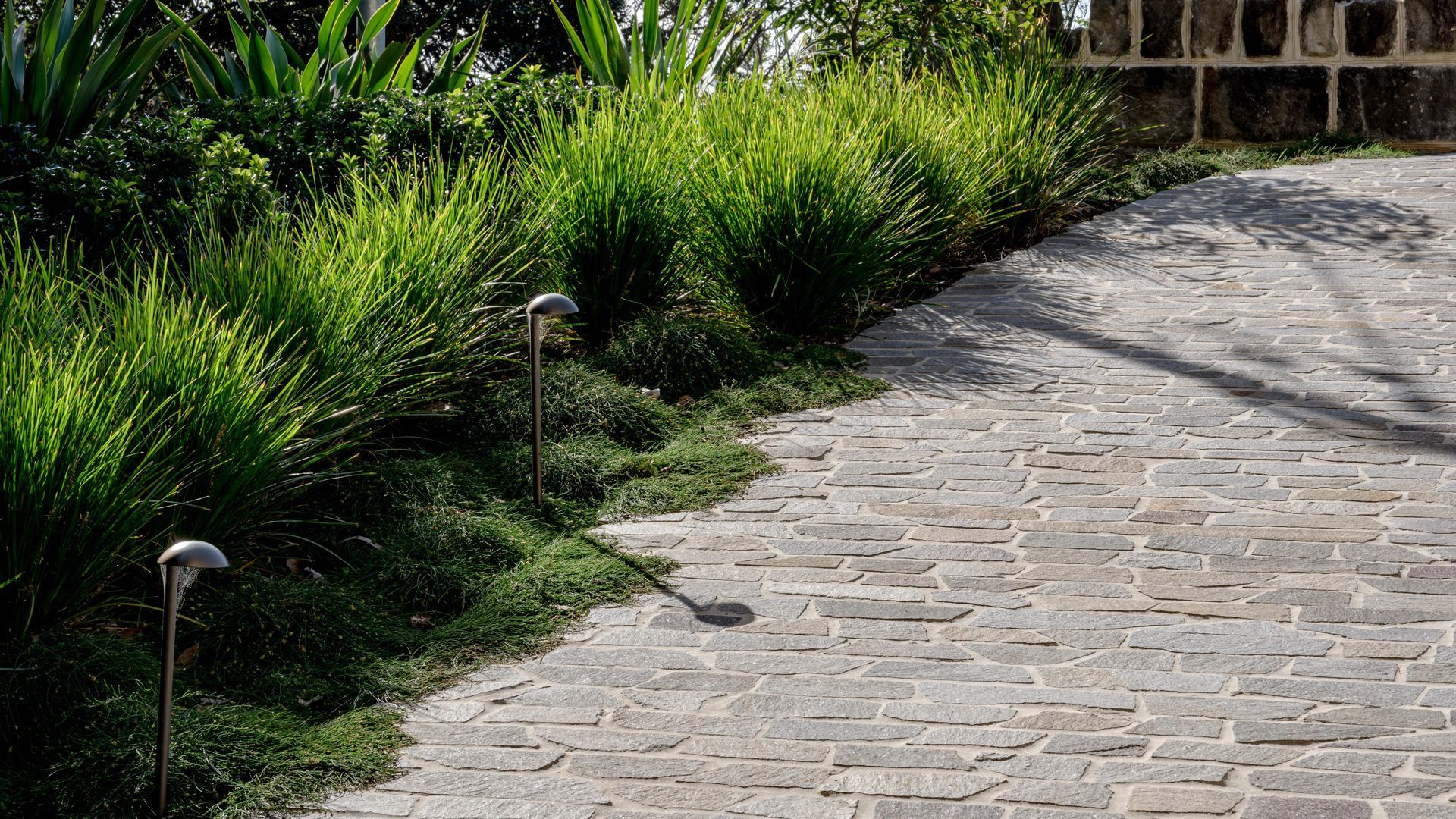 Desert Sand Granite custom pavers in a bush hammered finish took centre stage, including pool surrounds, pool coping, stairs, and verandah. Ensuring a one-of-a-kind outdoor space that reflects the homeowner’s unique style. Italian Filetti was incorporated into the driveway to complete the visual appeal. This unique material features a textured finish, adding a layer of visual interest and creating a truly individual masterpiece.