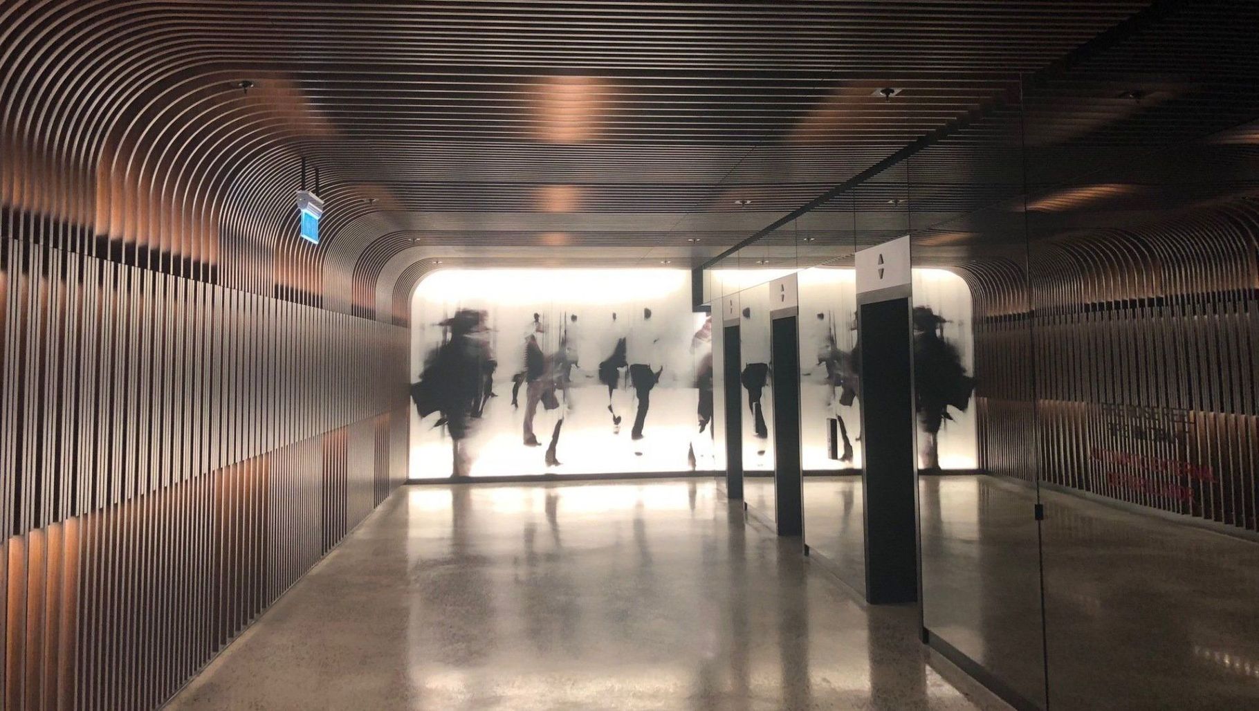 ArchiPro Project Summary - A striking 3,000 square metre foyer in Mount Street, North Sydney, featuring an undulating timber rib design that enhances connectivity and visual identity while seamlessly integrating lighting and services.