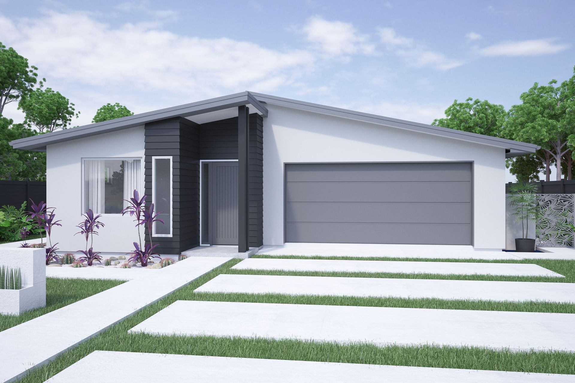 ArchiPro Project Summary - A collection of 3D renders showcasing a new show home featuring both single and double garage options.