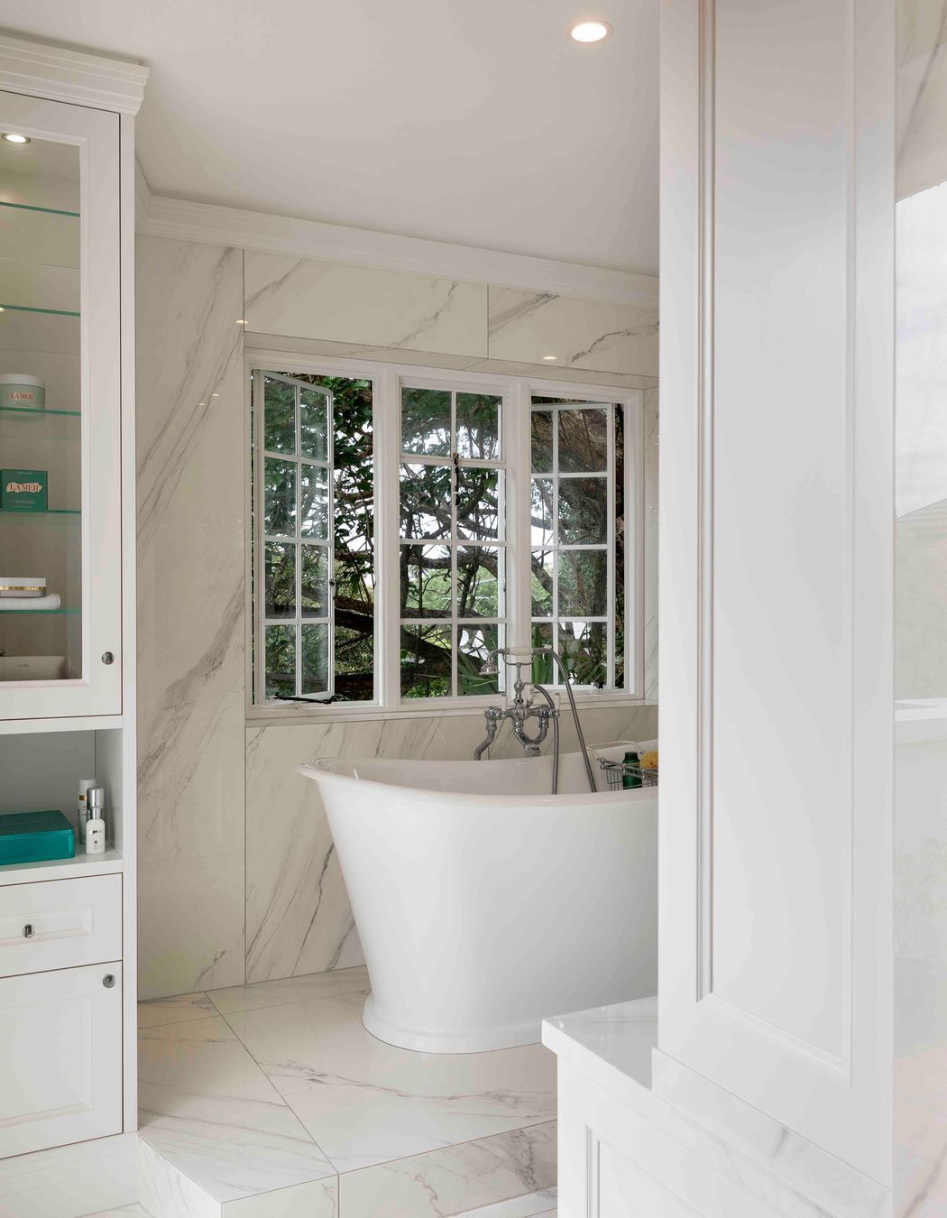 ArchiPro Project Summary - A luxurious and tranquil bathroom renovation in a 1926 Heritage Home, featuring a freestanding bathtub, double vanity, and spacious double shower, all designed to maintain the home's historical character while providing modern amenities.
