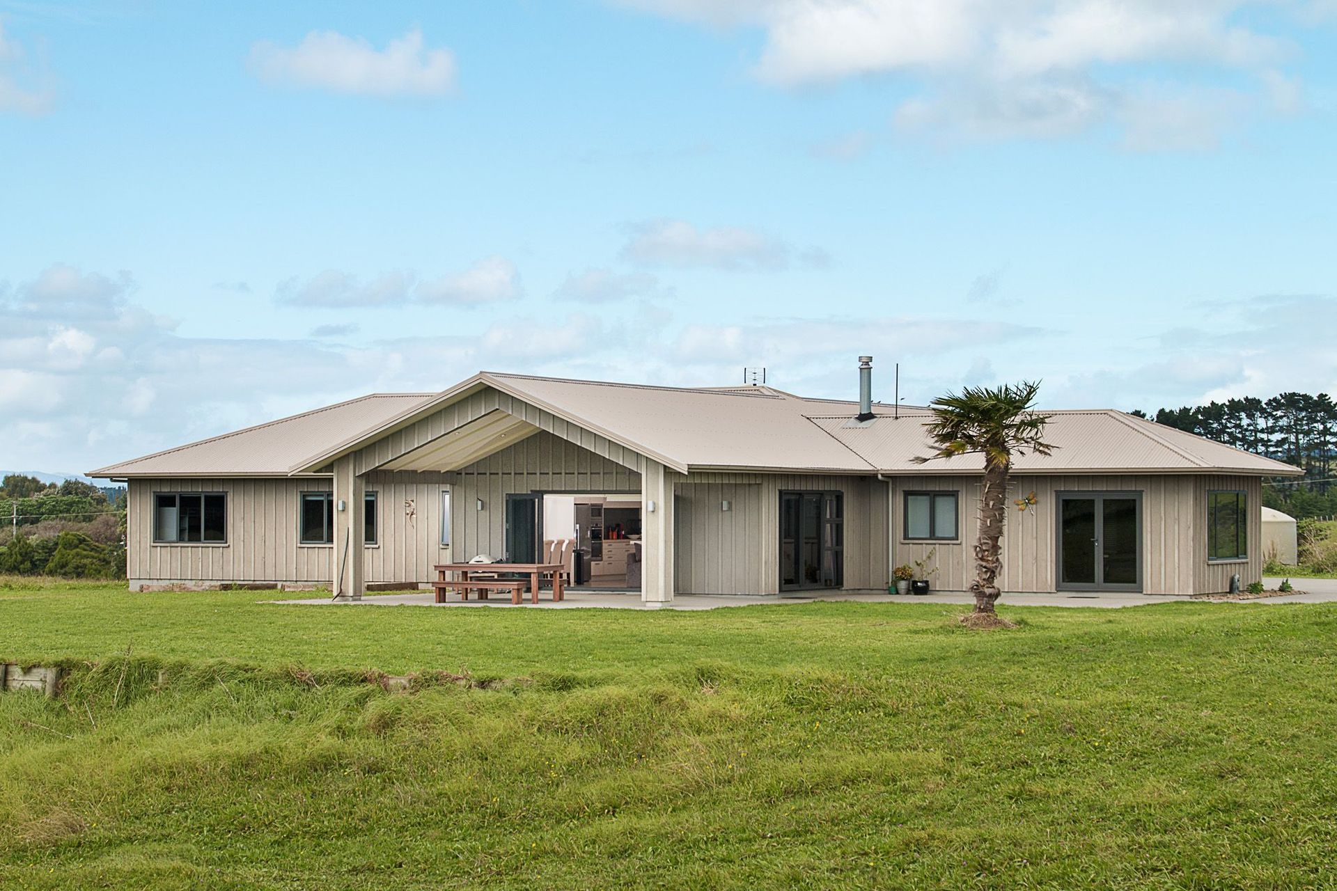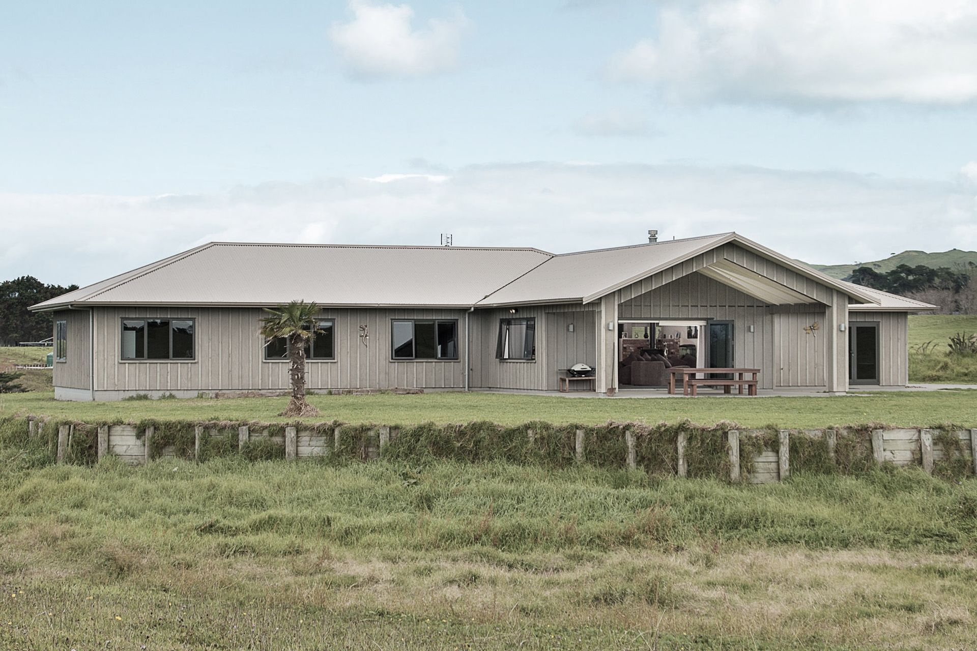 ArchiPro Project Summary - A bespoke country home featuring Board & Batten cladding, a corrugated Colorsteel roof, and dedicated wings for parents and children, designed to harmonize with its rural setting and reflect the owners' personalities.