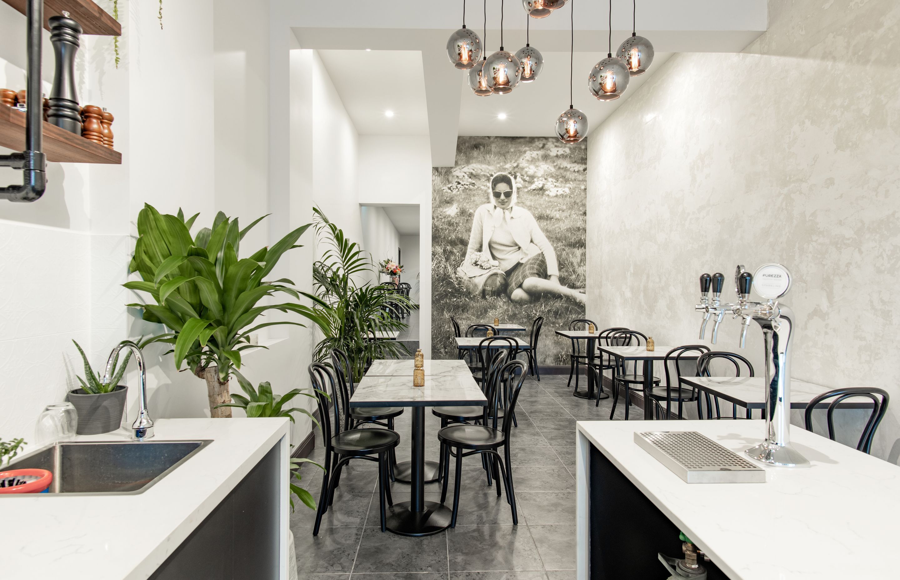ArchiPro Project Summary - A complete transformation of existing commercial premises into a vibrant café, featuring strategically placed coffee brewing at the entrance to enhance the inviting aroma across the footpath.