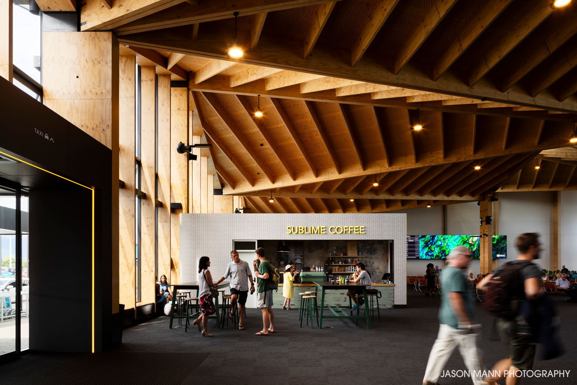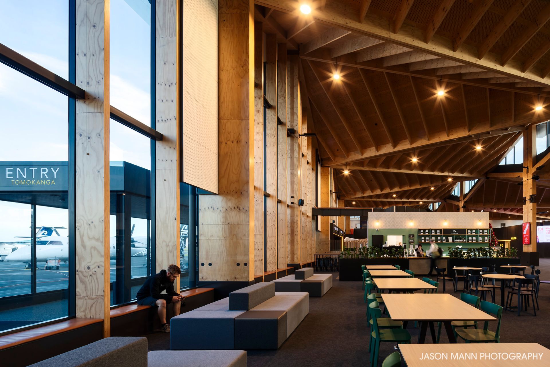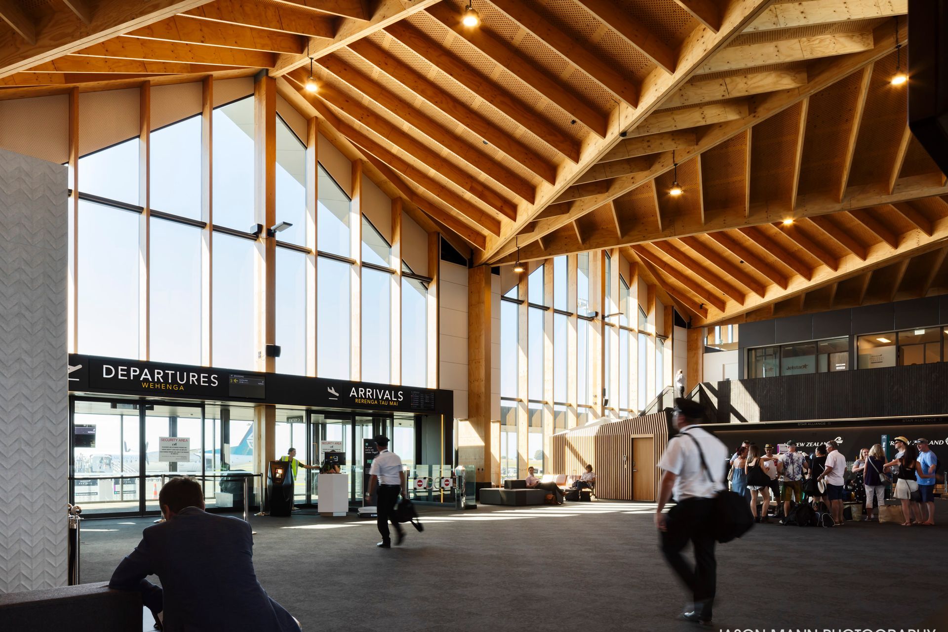 ArchiPro Project Summary - Nelson Airport Terminal, Stage 1 & Control Tower showcases innovative design and craftsmanship, featuring Hush Panel Wall & Ceiling Linings, beautifully captured by Jason Mann Photography to highlight the architectural excellence of this significant project.