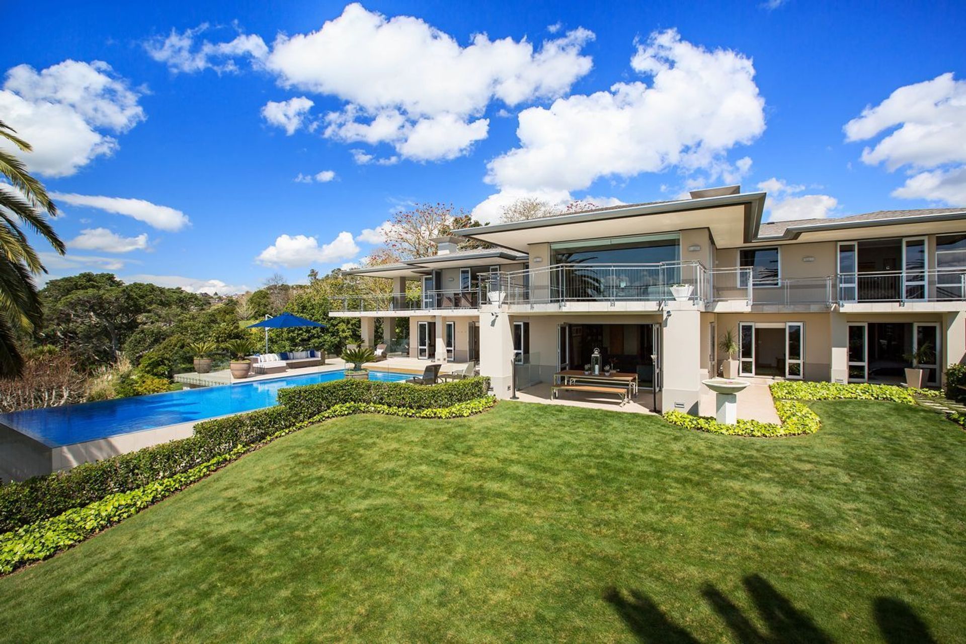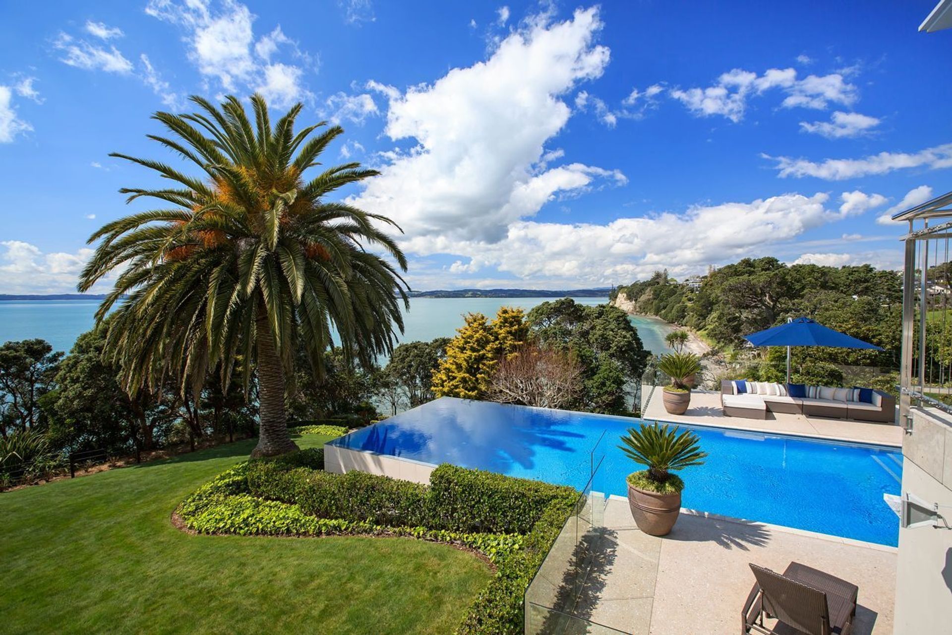 ArchiPro Project Summary - A stunning new home on the cliff featuring solid masonry construction, expansive overhanging eaves, an outdoor pool, a dedicated movie room, a smart wire system, and in situ concrete floors, perfectly positioned across two properties.