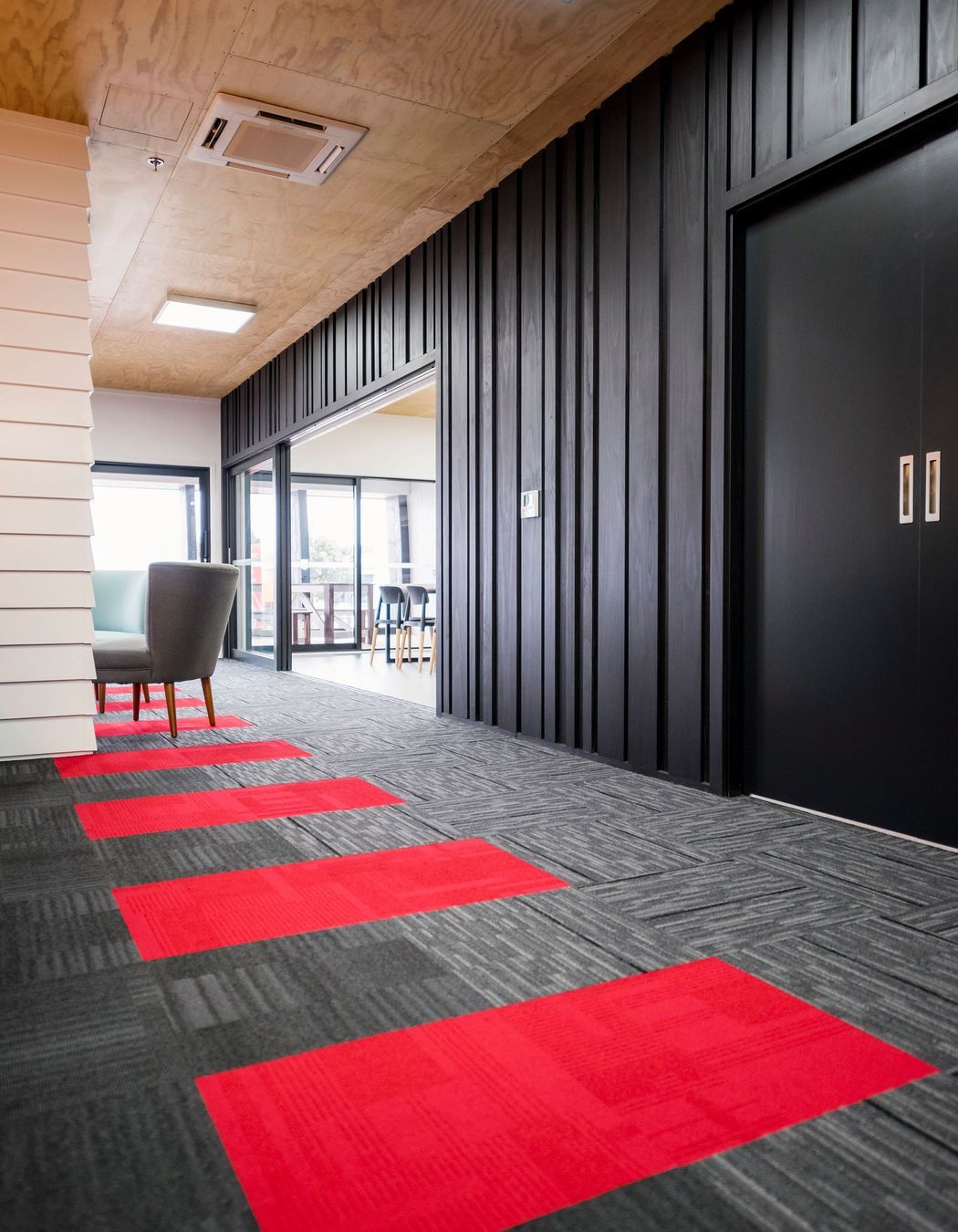 ArchiPro Project Summary - The headquarters of New Zealand Certified Builders features a modern Brutalist design with a striking facade and innovative composite materials.