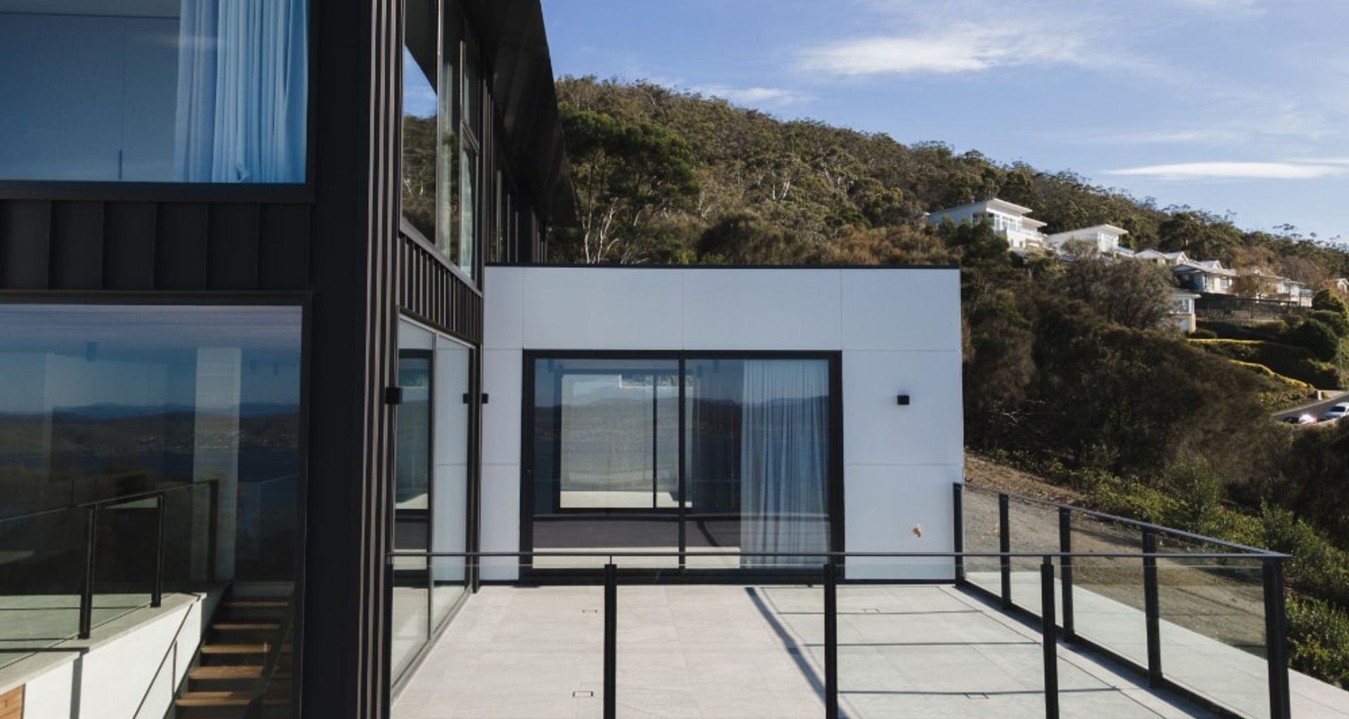 ArchiPro Project Summary - The Nicholas Drive Residence features modern design with eco-friendly materials, a stunning balcony, and elegant aluminium handrails.