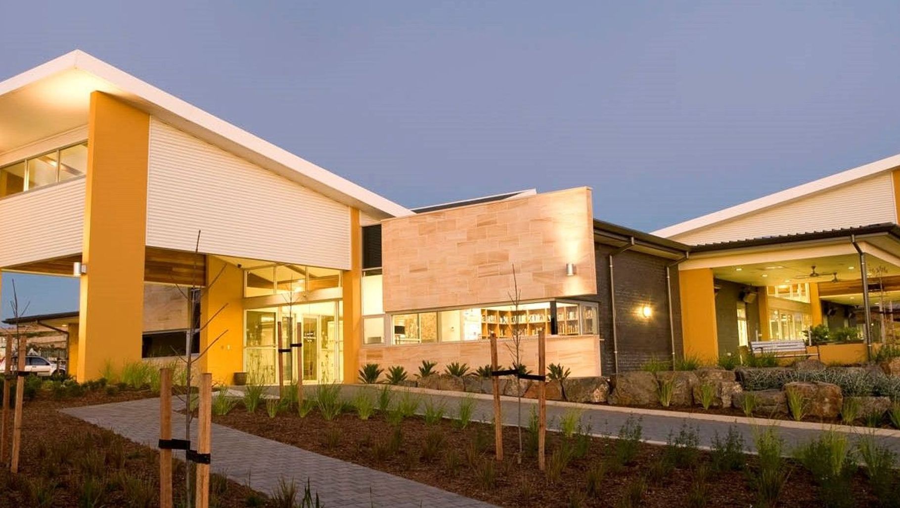 ArchiPro Project Summary - Award-winning River Point Community Centre featuring a striking butterfly roof, designed for natural light and spacious communal areas, including offices, a library, games rooms, and expansive lounge and dining spaces, highly regarded by residents and operators alike.