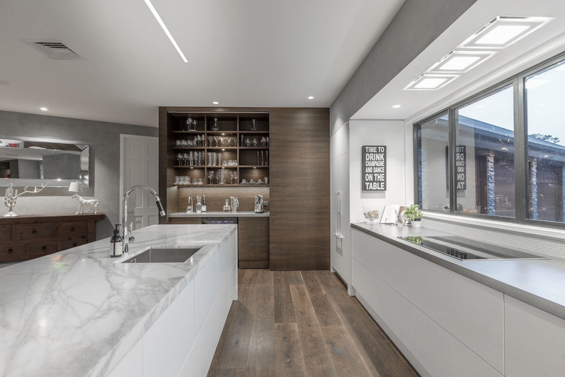 ArchiPro Project Summary - A spacious, contemporary kitchen designed for family living and entertaining, featuring a dedicated drinks area, ample storage, and a striking design that enhances the home's aesthetic without obstructing sightlines.