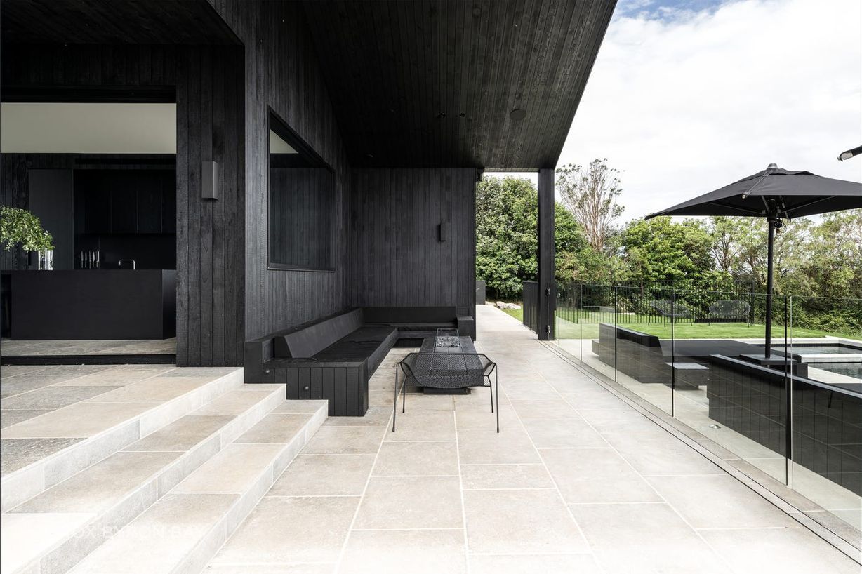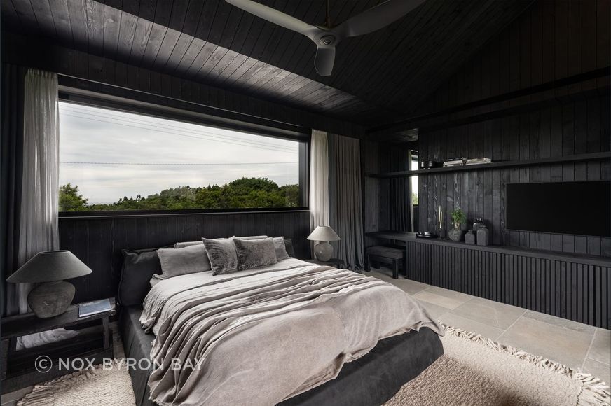 ArchiPro Project Summary - NOX Byron Bay: A modern architectural masterpiece completed in 2023, featuring a striking black and white palette, luxurious amenities including a sauna and cinema room, and a seamless blend of industrial elegance and contemporary comfort.