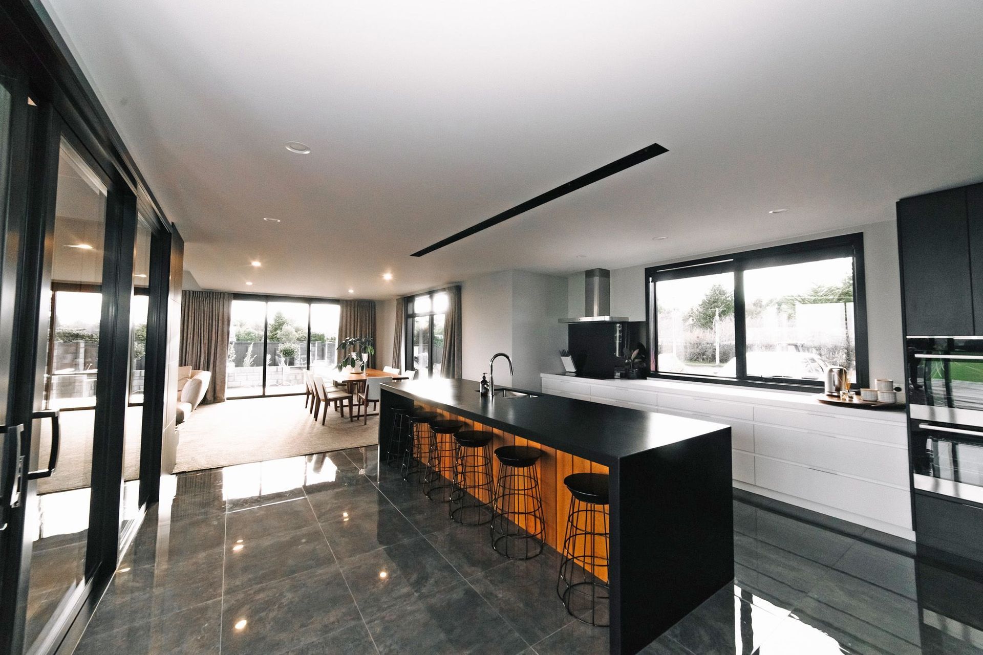 ArchiPro Project Summary - Contemporary family home in Oamaru featuring stunning westward views, four bedrooms, spacious open-plan living, and luxurious finishes including underfloor heating and floor-to-ceiling tiled bathrooms.