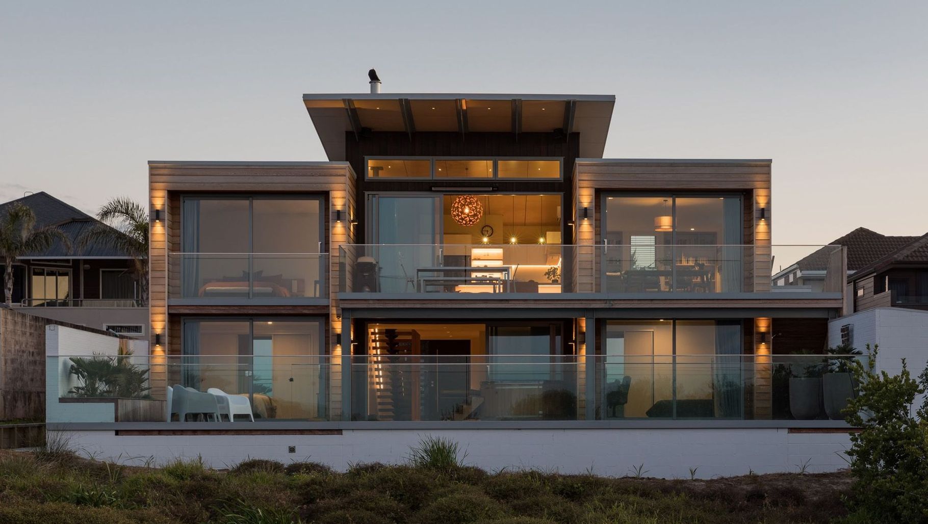 ArchiPro Project Summary - A harmonious beachfront residence that blends natural aesthetics with functional design, featuring elevated living spaces, expansive ocean views, and a unique combination of cedar weatherboard cladding and diverse wood elements.