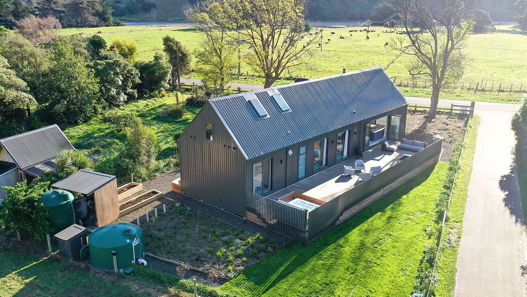 ArchiPro Project Summary - A beautifully crafted bach in Okains Bay, designed for relaxation and connection with nature, showcasing the expertise of JM Built.