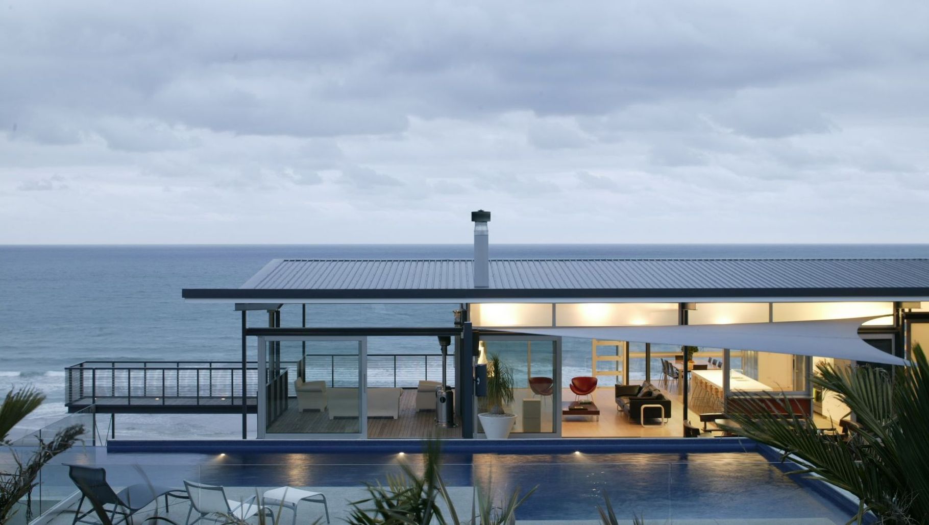 ArchiPro Project Summary - Spectacular single-storey residence on a coastal ridge, designed for extended family living with a T-shaped layout, offering breathtaking views and sheltered outdoor spaces.