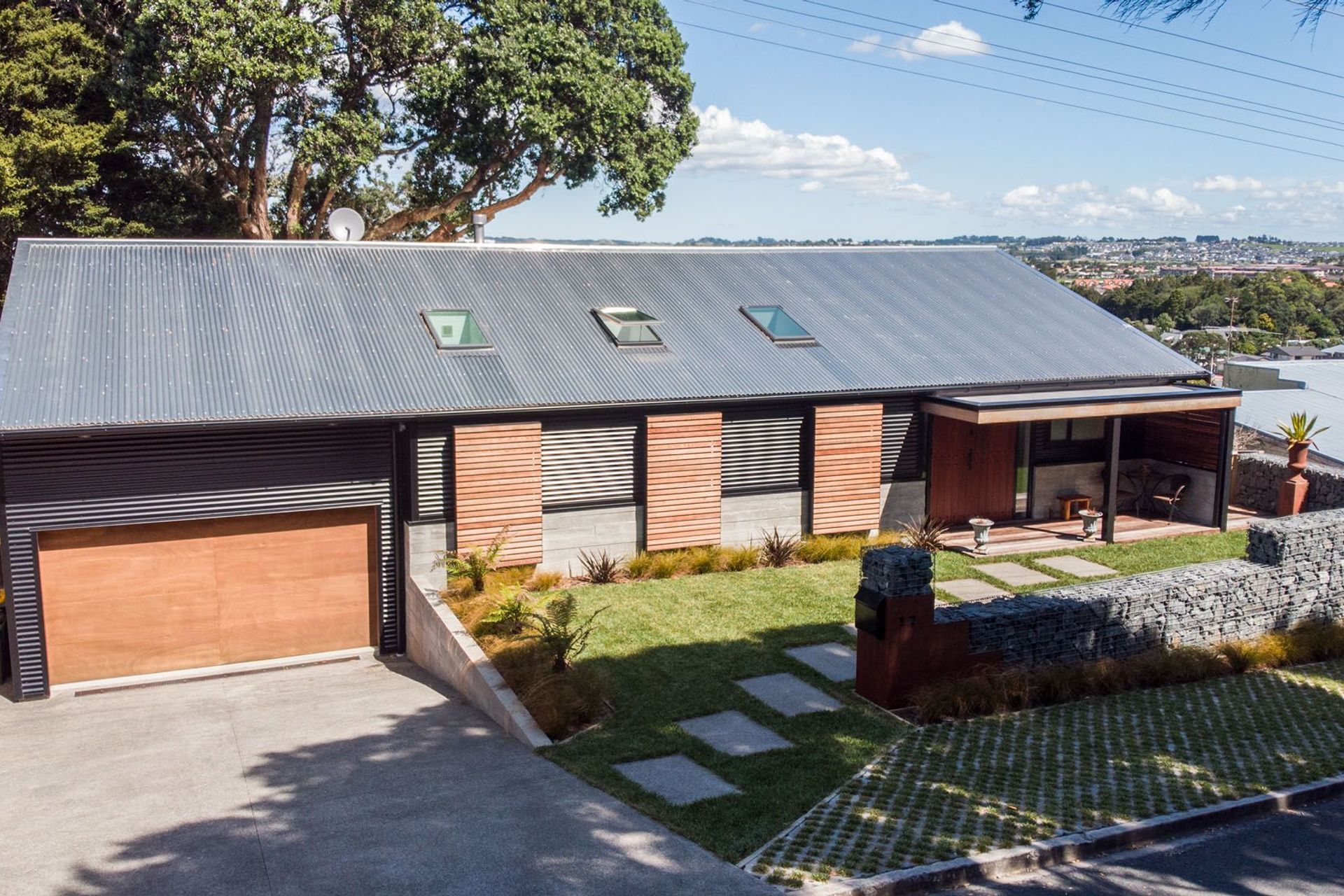 ArchiPro Project Summary - The Old North Road Home showcases modern architecture with a beautiful roof, elegant siding, and a spacious garage, complemented by well-planned garden buildings and a thoughtfully designed driveway.