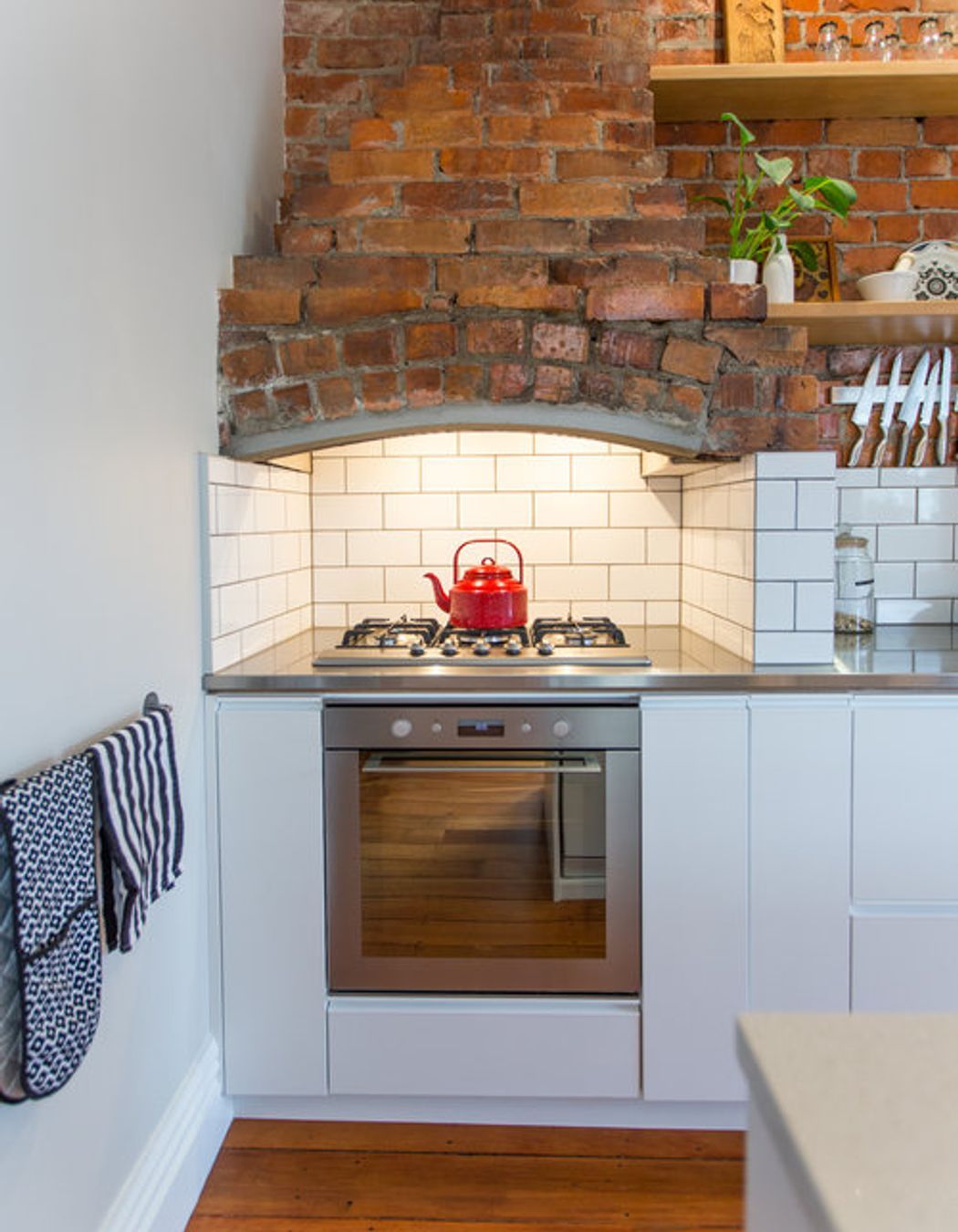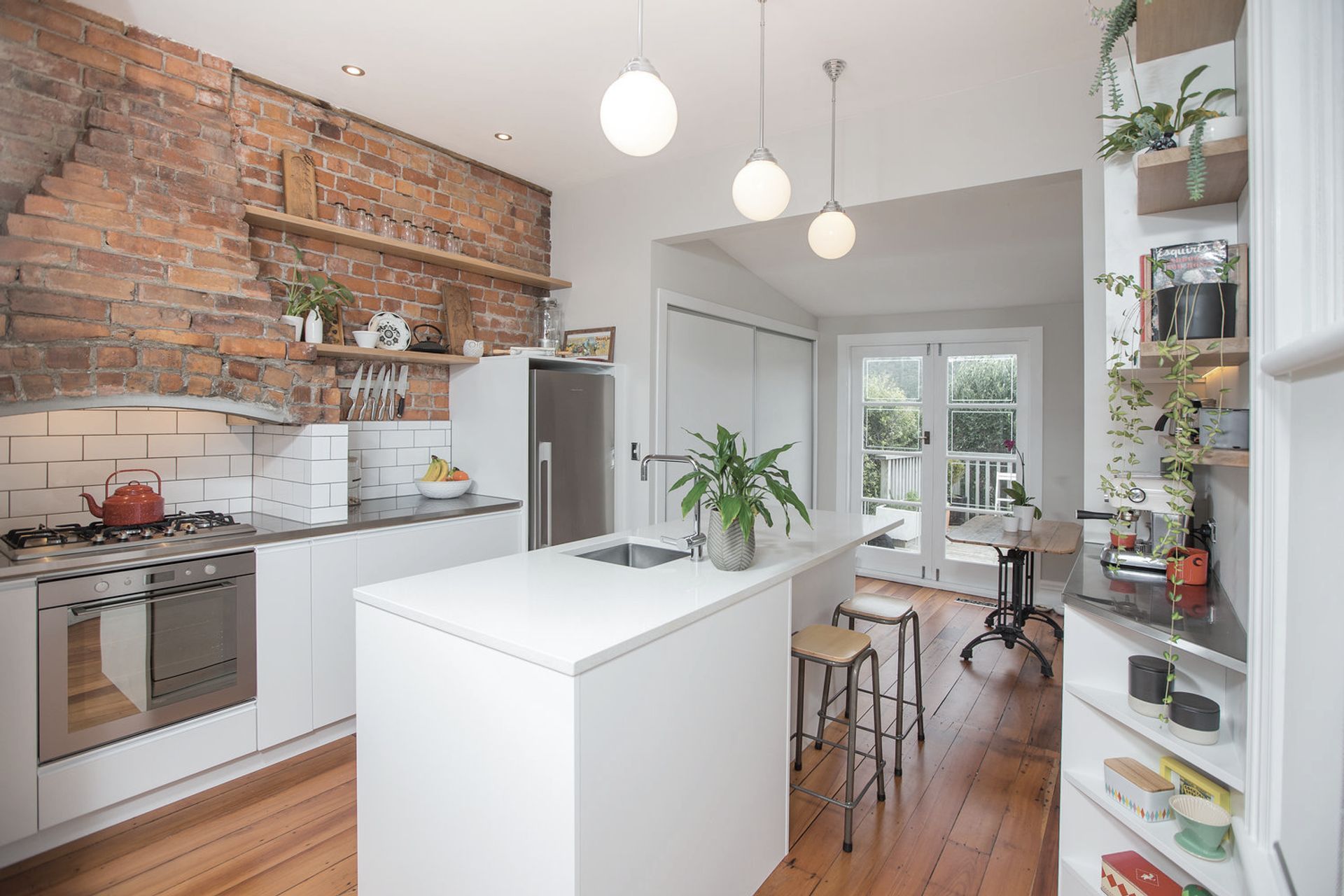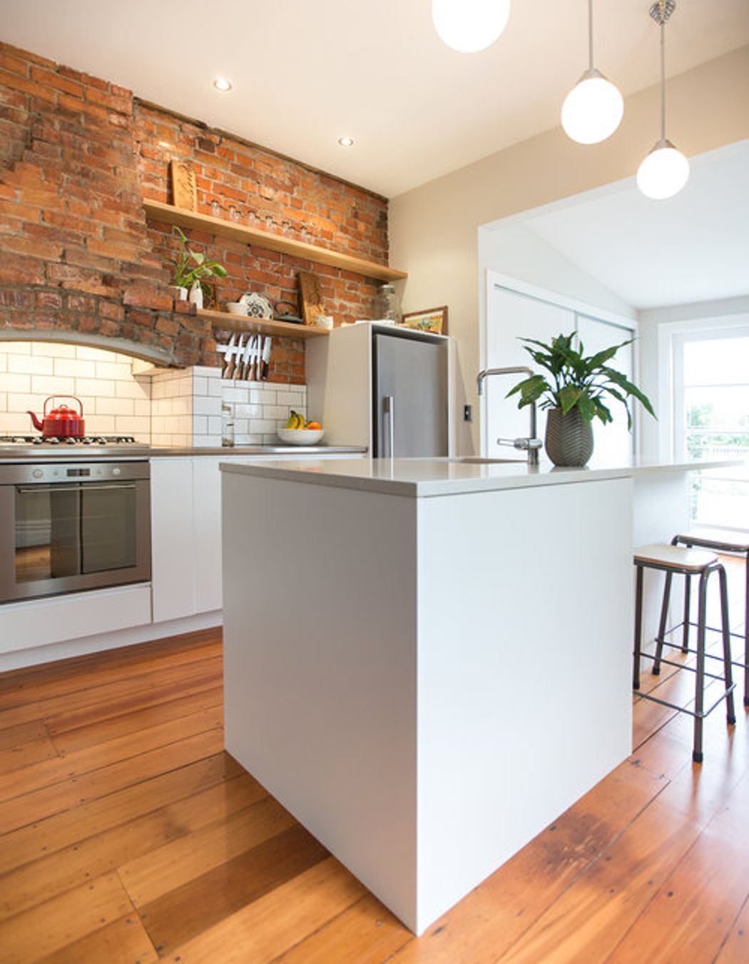 ArchiPro Project Summary - A harmonious blend of history and modernity, featuring an exposed brick wall that adds character and warmth, complemented by a thoughtful palette of white, timber, and diverse textures to create a welcoming home environment.