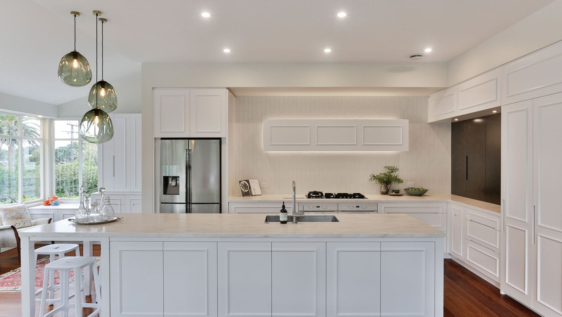 ArchiPro Project Summary - A harmonious blend of traditional and contemporary design, the Omahu Kitchen features enhanced storage solutions, a practical island seating arrangement, and elegant finishes, creating a functional and inviting space for cooking and entertaining.