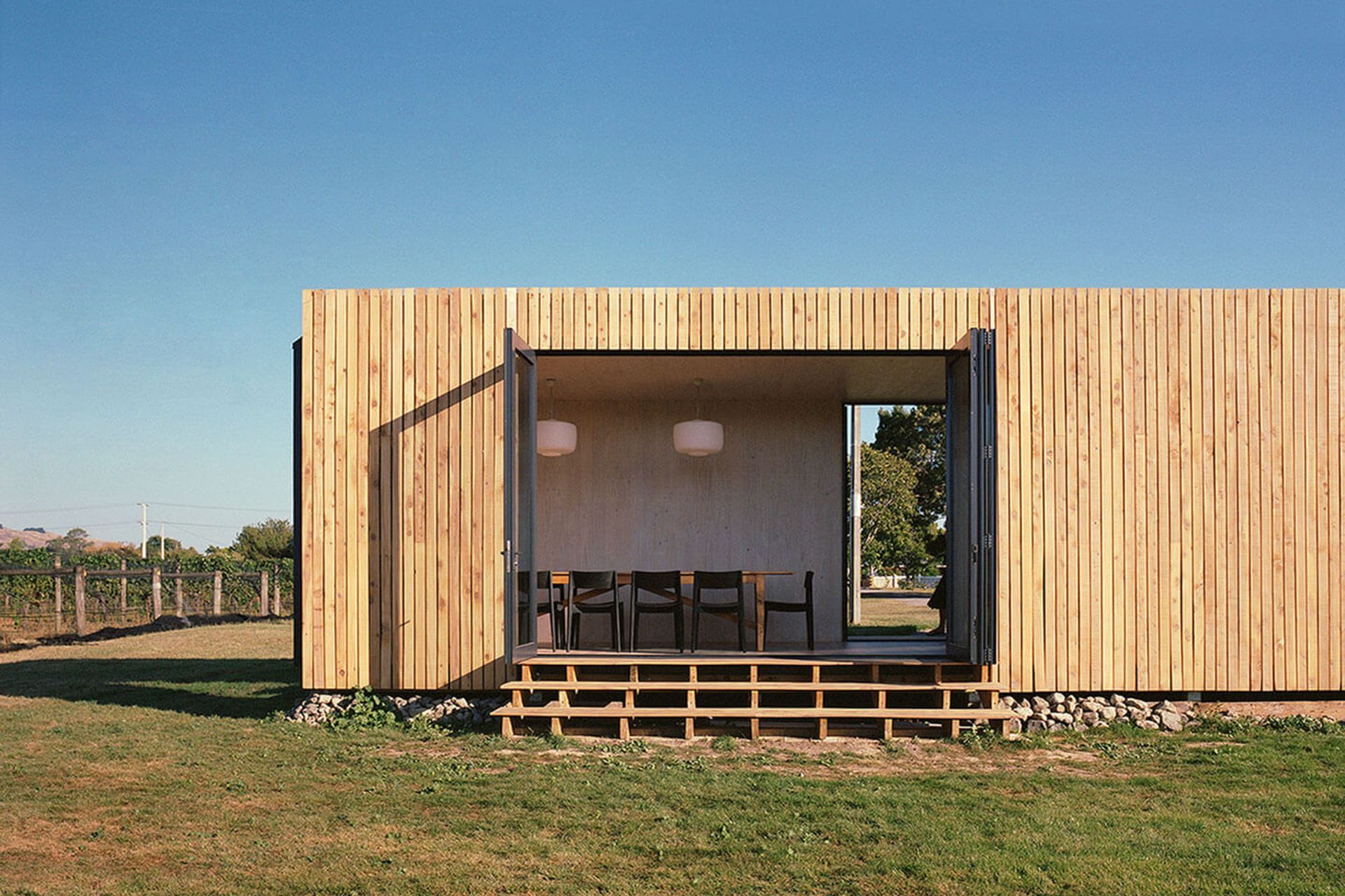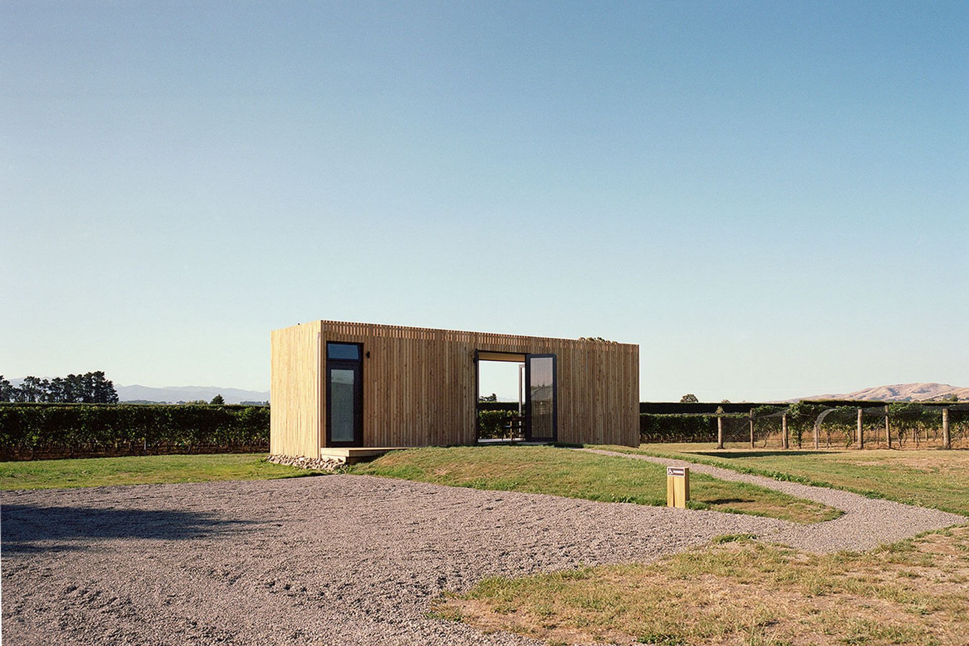 ArchiPro Project Summary - On Giants' Shoulders tasting room in Martinborough, New Zealand, offers an intimate space for wine education, designed to enhance guest experience while harmonizing with the vineyard's landscape through prefabricated CLT construction.