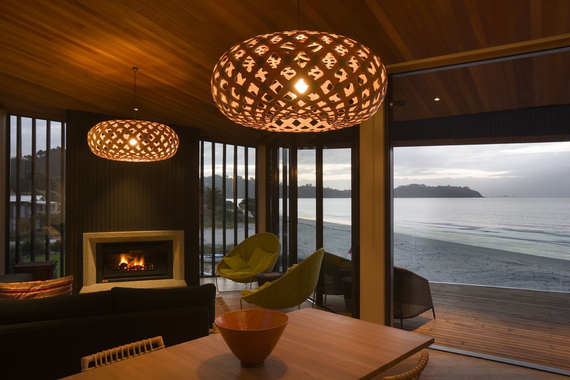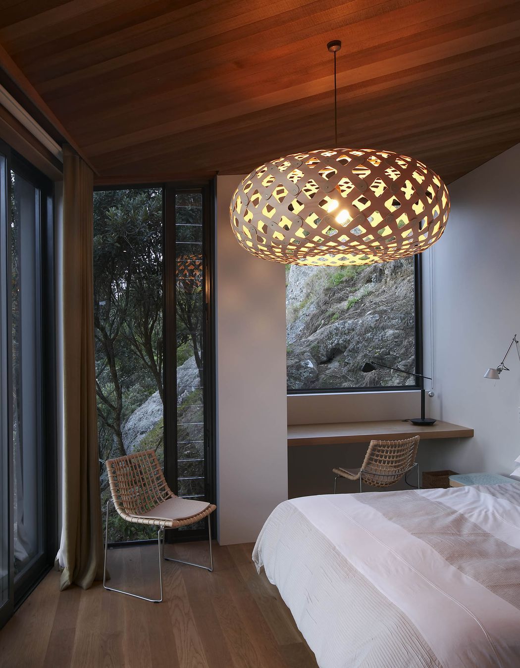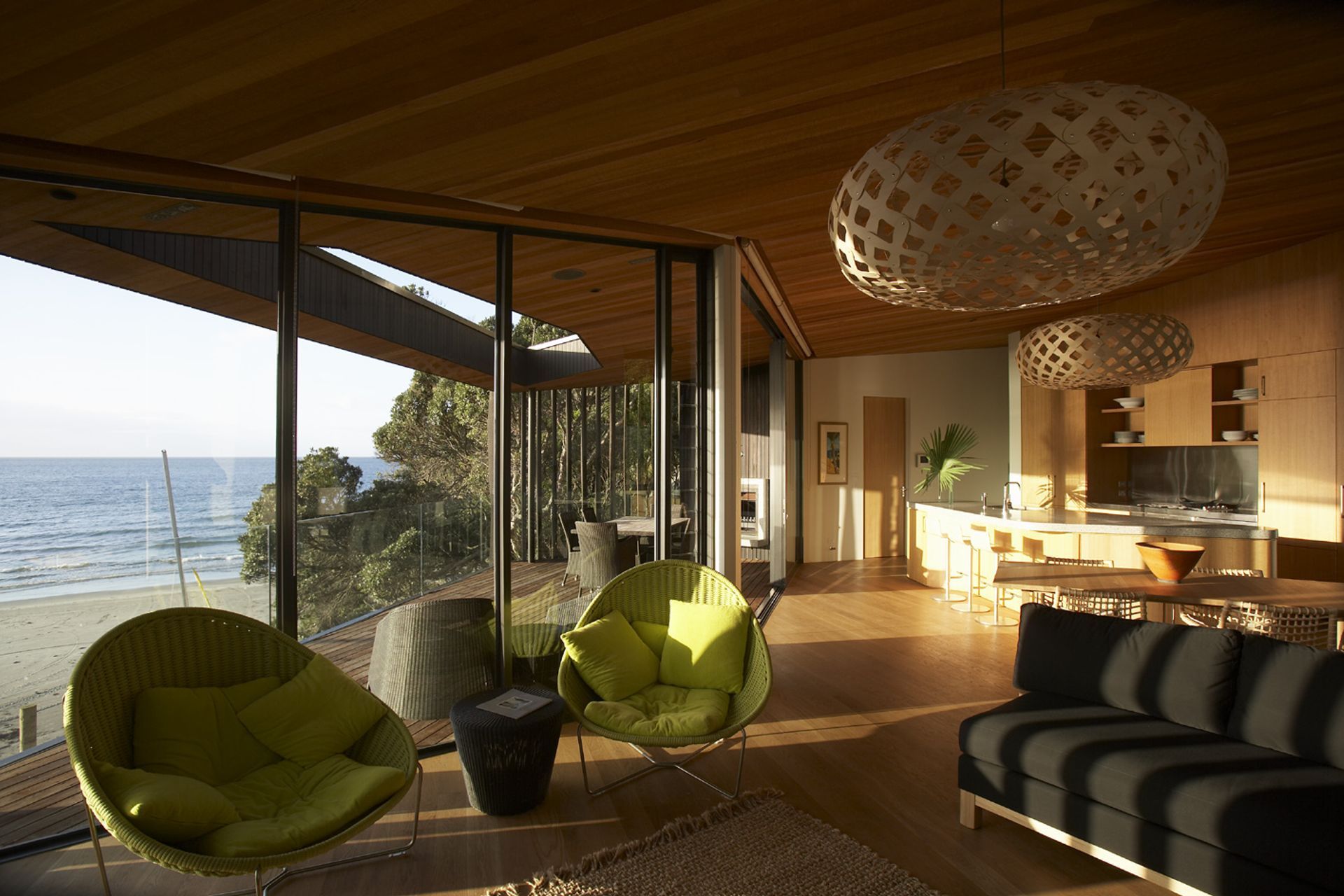 ArchiPro Project Summary - A contemporary holiday home on Waiheke Island, featuring an angular black timber design that harmonizes with its natural surroundings and offers stunning beach views, while embracing the local landscape and craftsmanship.