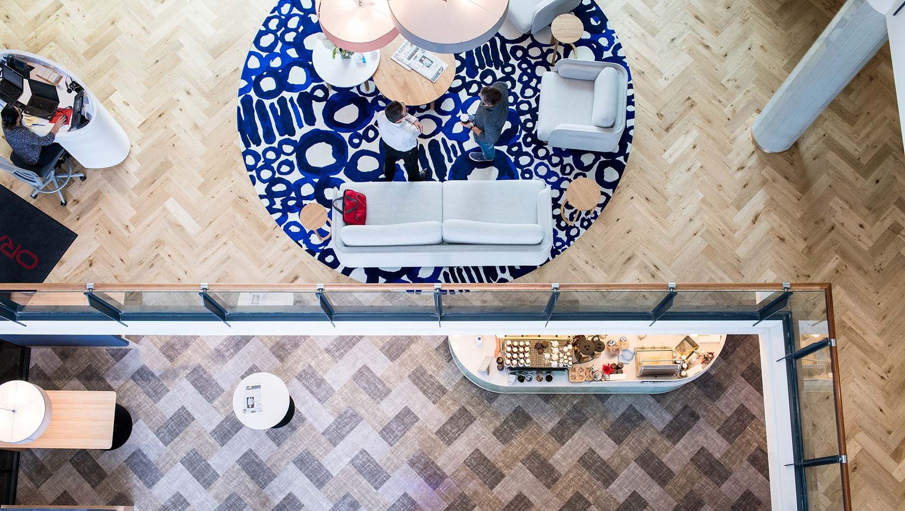 ArchiPro Project Summary - Oracle Corporation's transformation into a service-oriented company featuring a vibrant atrium, innovative café/work zone, and a unique staff lunchroom designed to foster collaboration and creativity.
