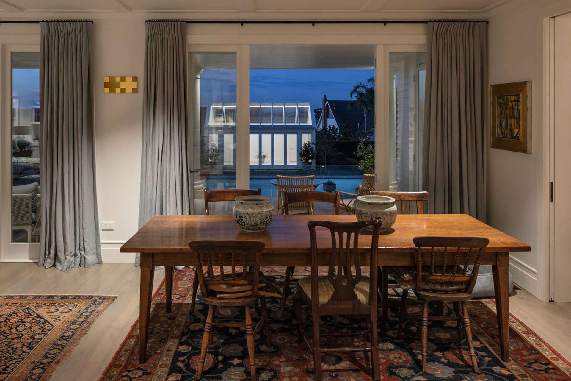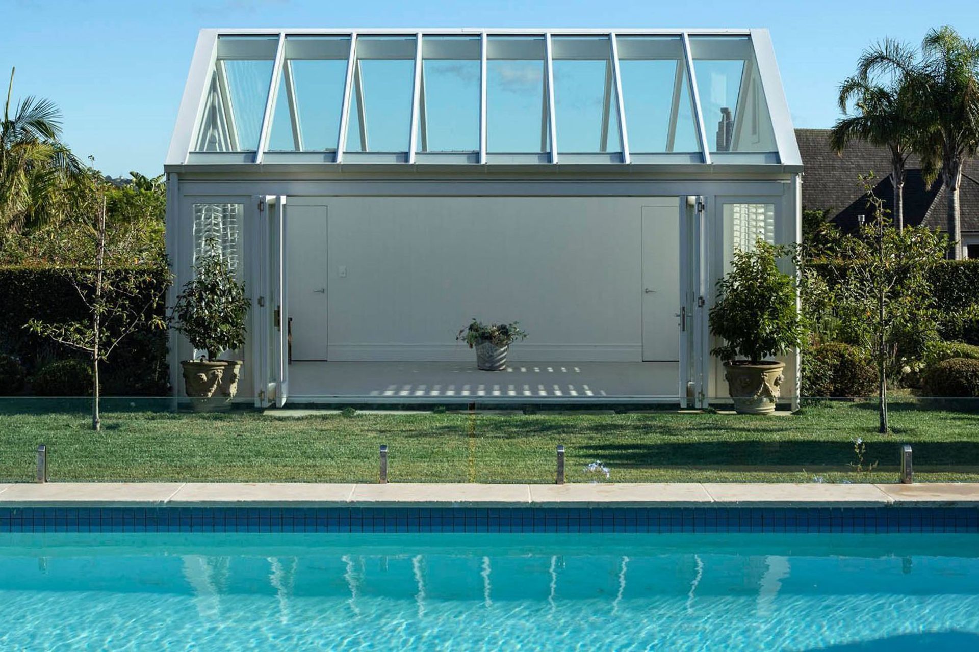 ArchiPro Project Summary - Extensive restoration of an ocean view home featuring a cedar shingle roof and a luxurious glass pool house, completed in collaboration with architect Christian Anderson.