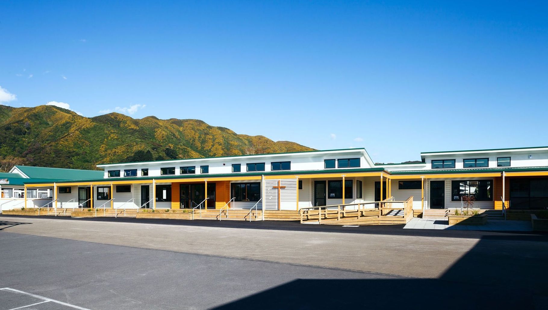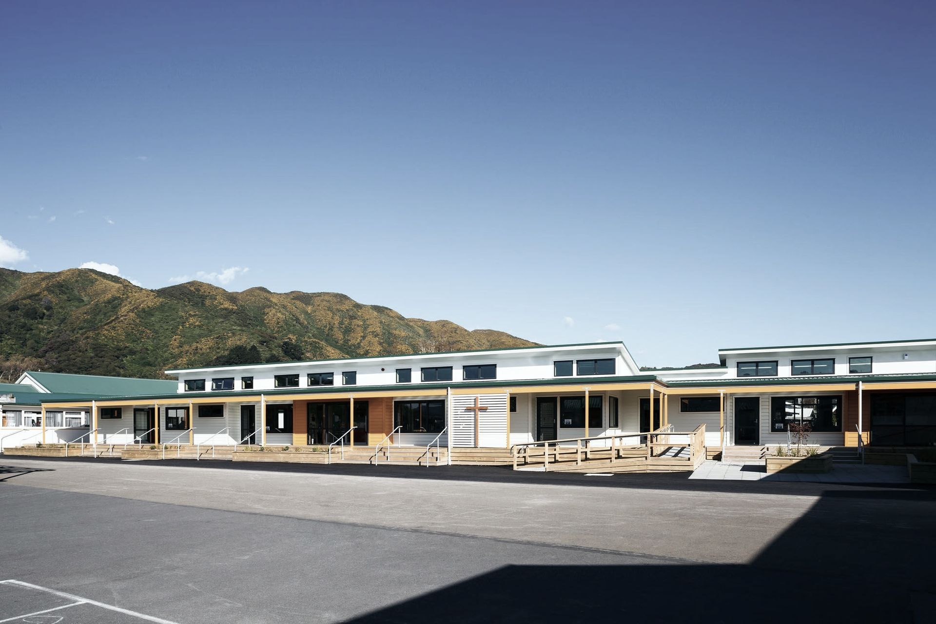 ArchiPro Project Summary - Refurbishment and expansion of Our Lady of the Rosary School with a two-stage construction approach, featuring modern classrooms and a shared outdoor learning space, enhancing educational facilities while ensuring safety and functionality.
