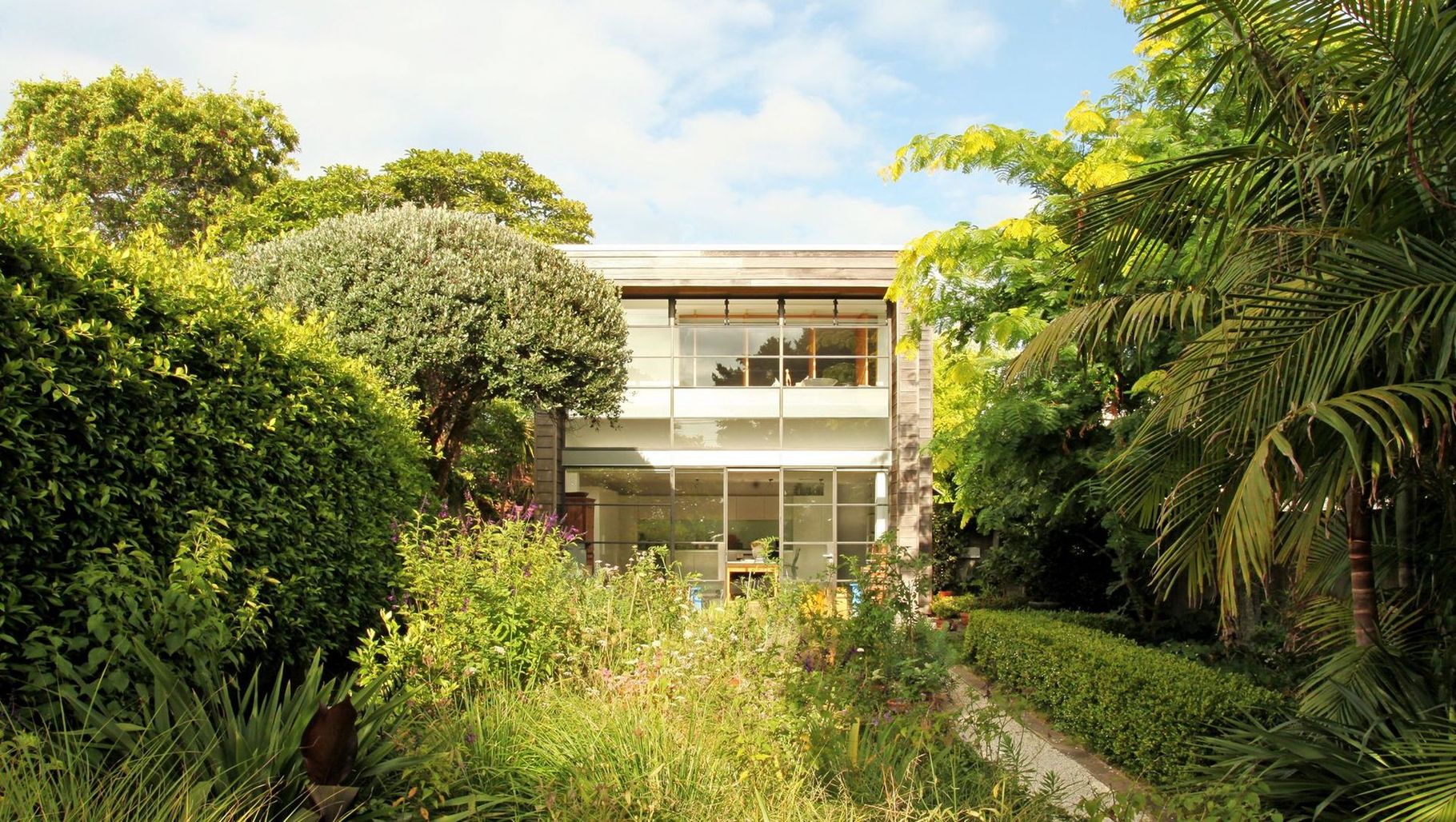 ArchiPro Project Summary - A beautifully landscaped estate featuring native shrubs and plants, emphasizing sustainability and biodiversity.