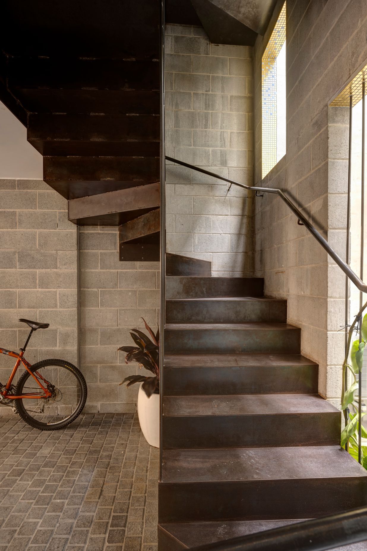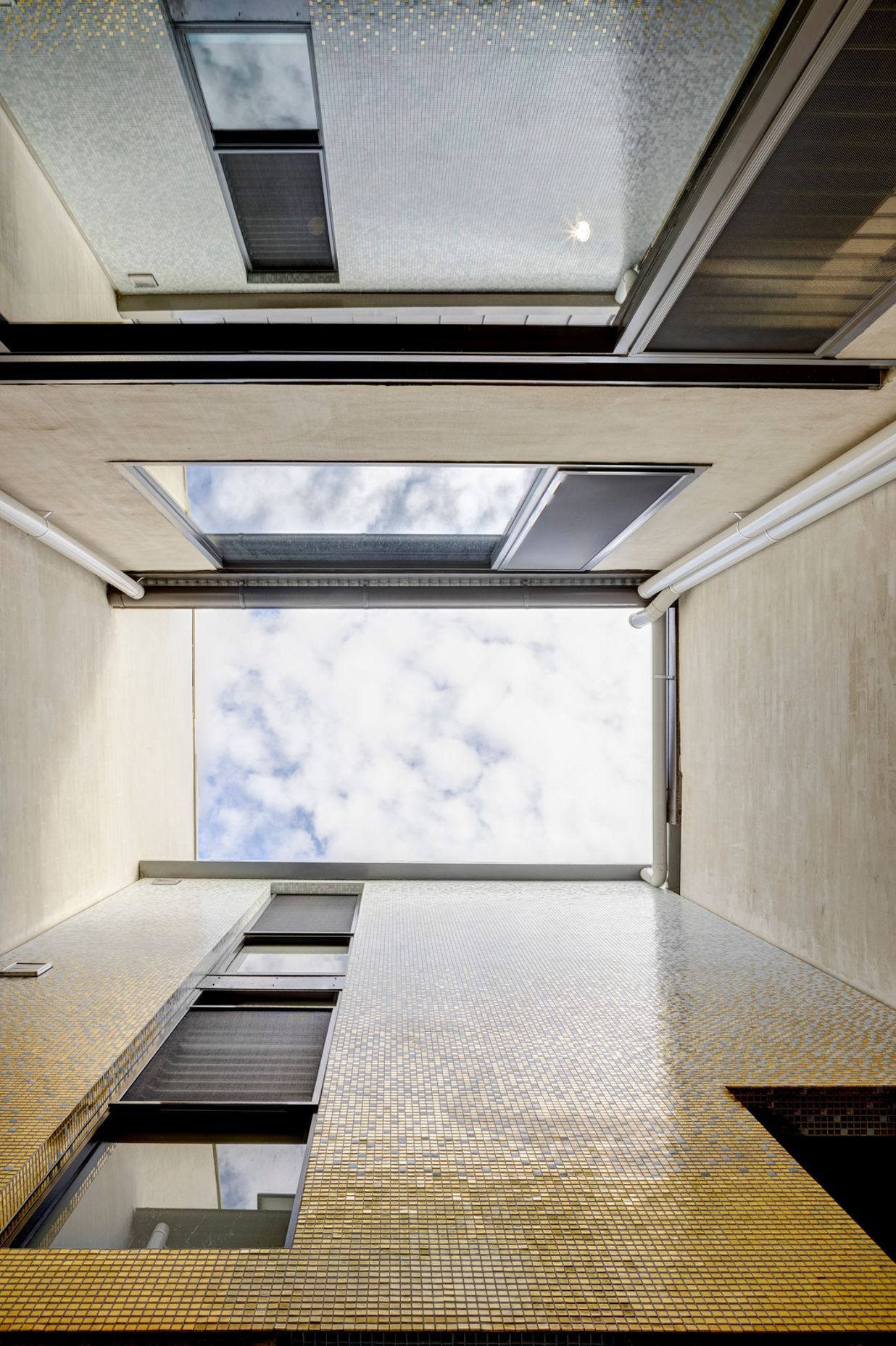 ArchiPro Project Summary - Revitalization of a Darlinghurst commercial terrace into a dynamic architect's office and a Japanese-style vertical dwelling, featuring a unique design with a laser-cut steel stair and blue mosaic tiles that pay homage to its historical roots.