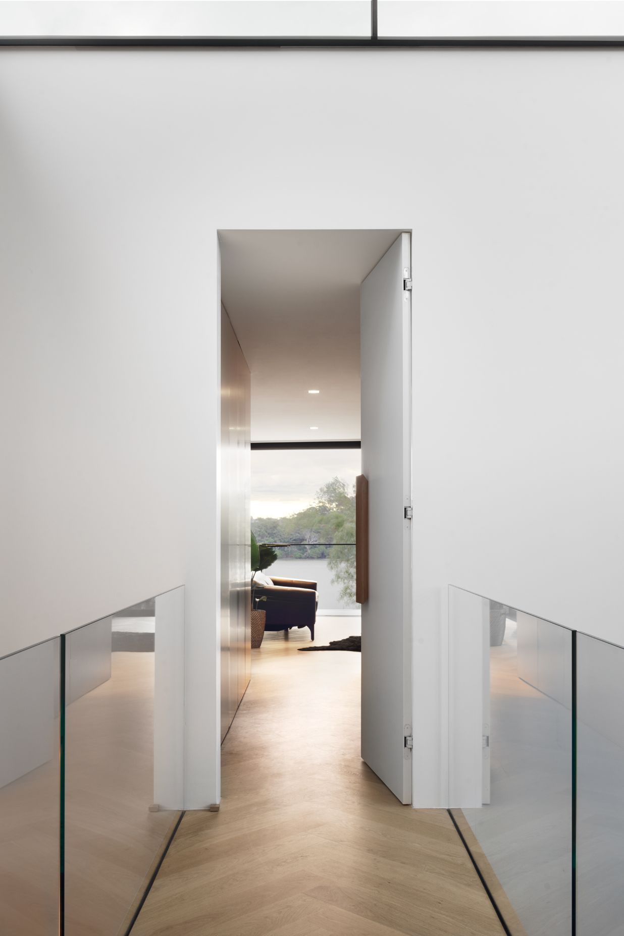 ArchiPro Project Summary - Oyster Bay House: A luxurious waterfront residence designed for a business couple, seamlessly integrating stunning views of the Georges River with spacious living across three levels, including a guest suite for family visits.