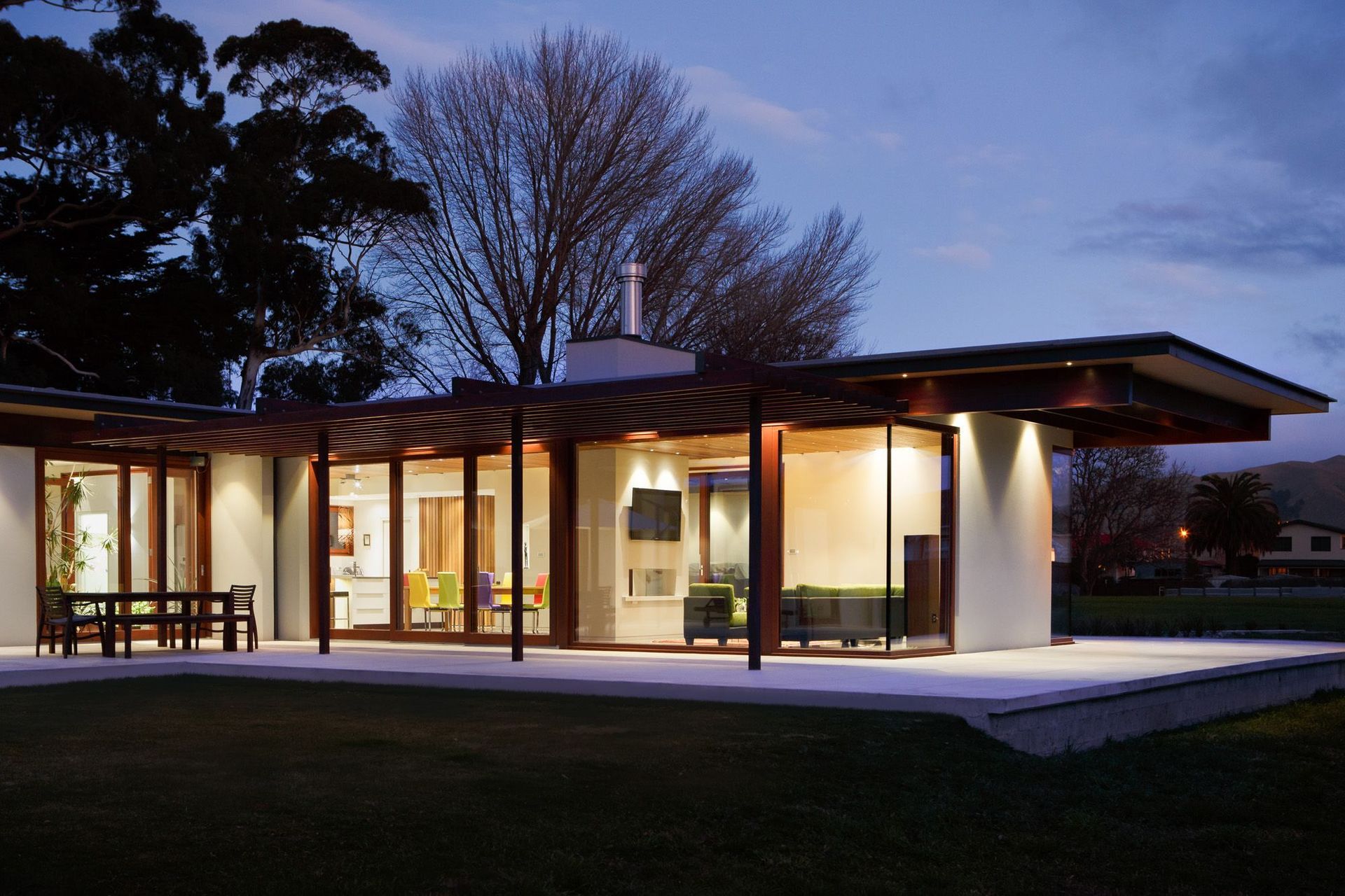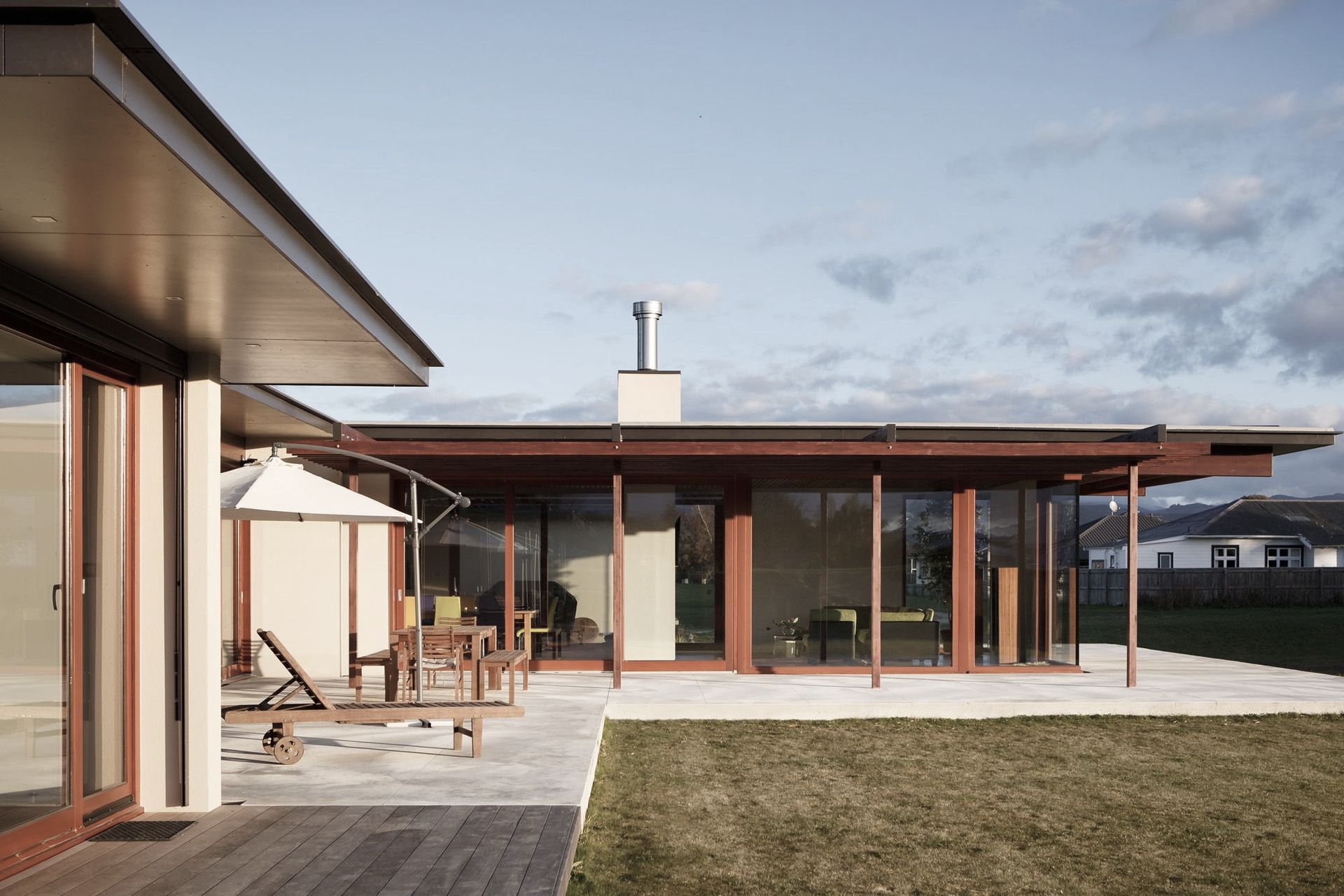 ArchiPro Project Summary - Contemporary family home designed for a French/NZ couple, harmoniously integrated with the riverside landscape, featuring a cruciform layout that enhances outdoor living and privacy while utilizing timber as a key material throughout.