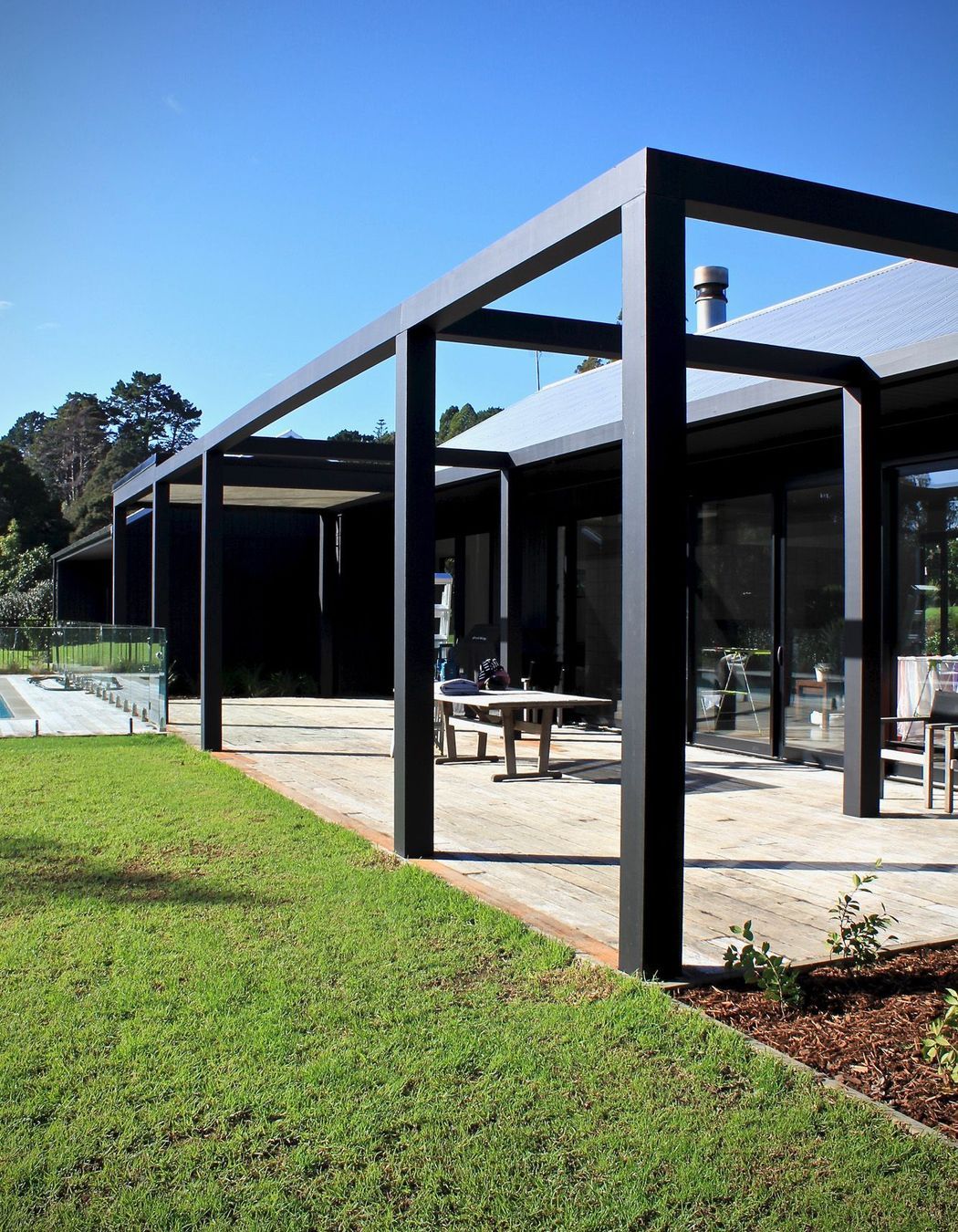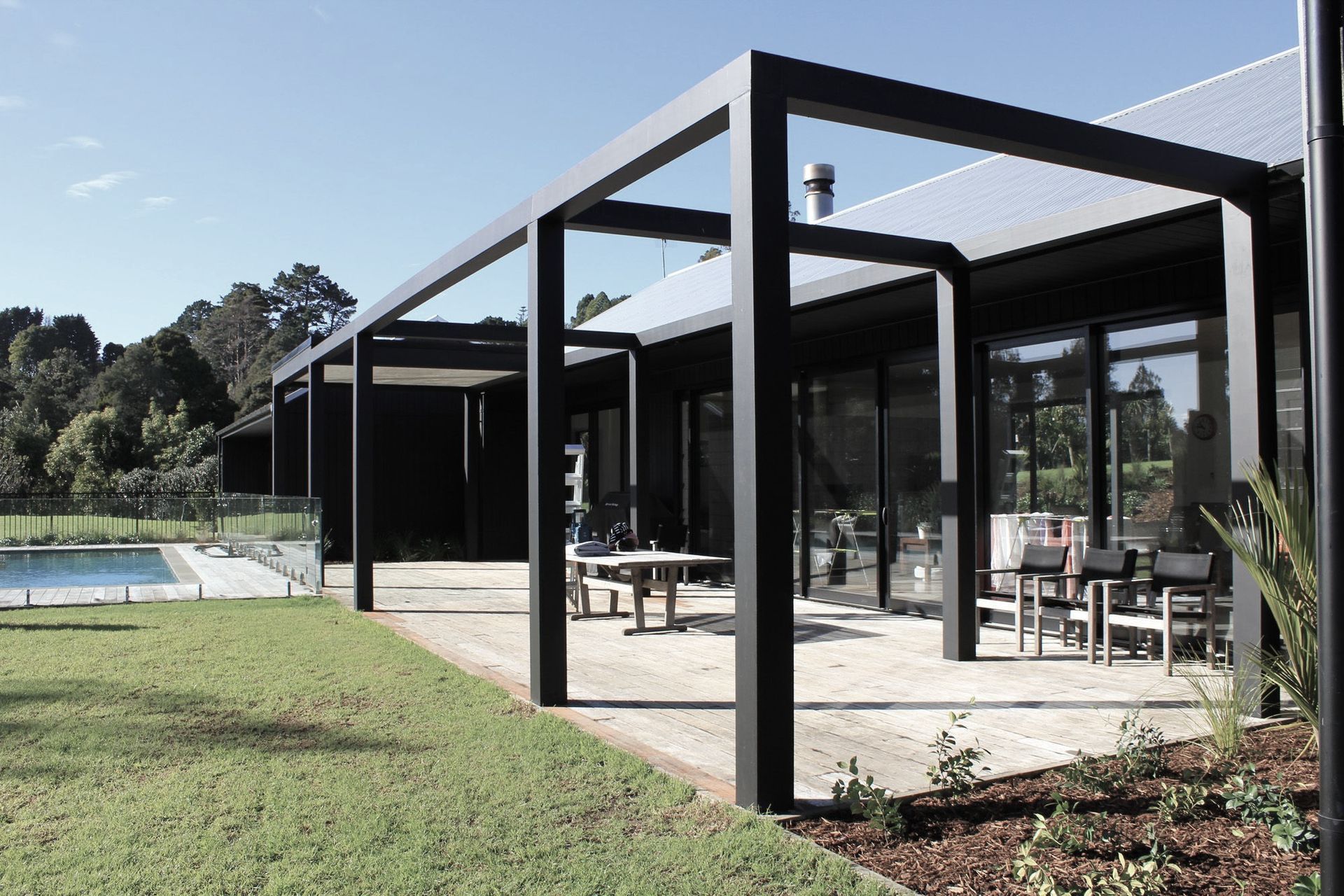 ArchiPro Project Summary - Elegant pergola design enhancing indoor-outdoor flow, featuring hidden connections and robust Glu Lam beams, seamlessly integrated with the existing home and deck, in collaboration with Humphrys Landscapes.