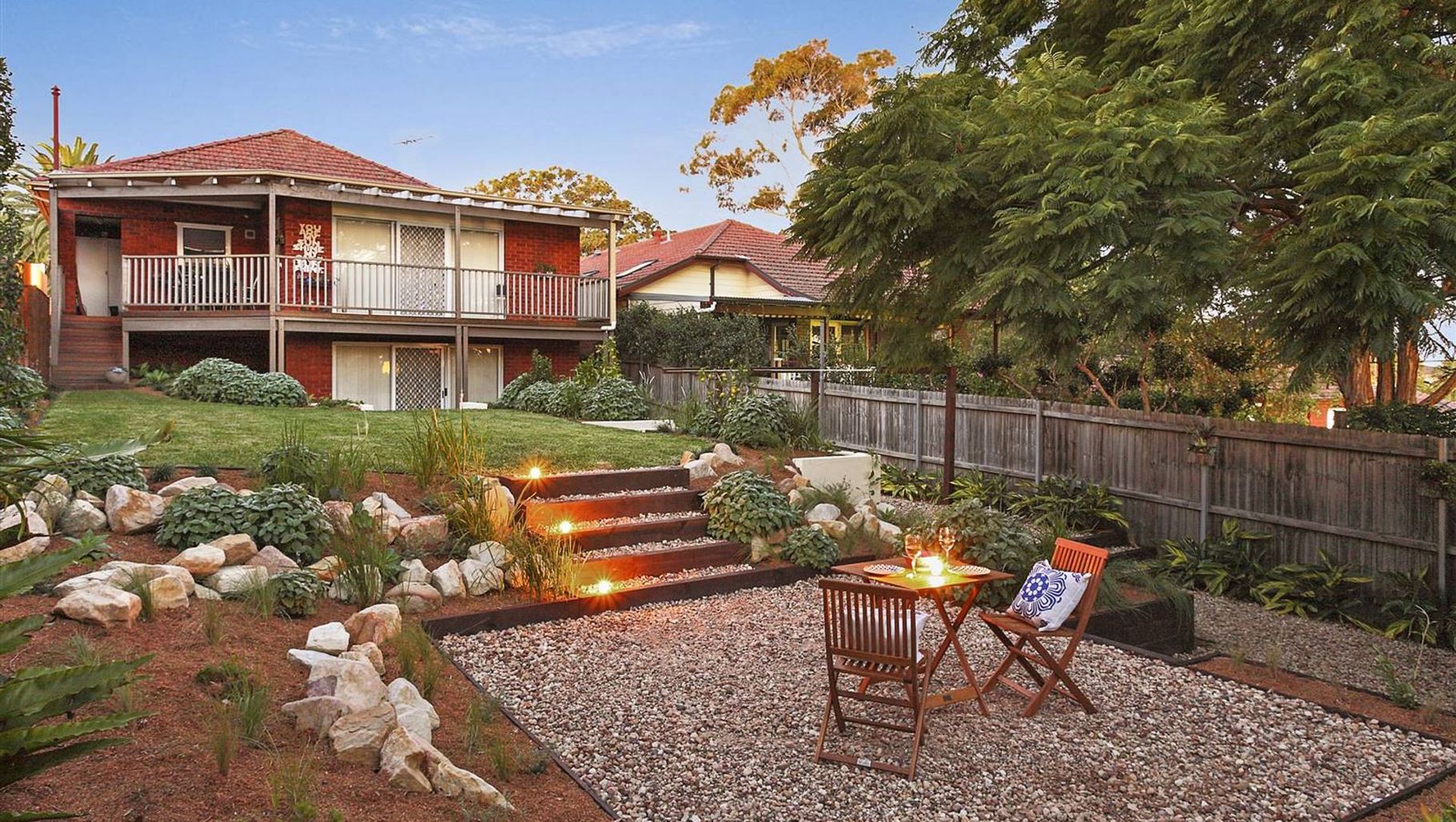 ArchiPro Project Summary - A captivating garden design featuring level changes and calming planting, creating an inviting space for relaxation and exploration.
