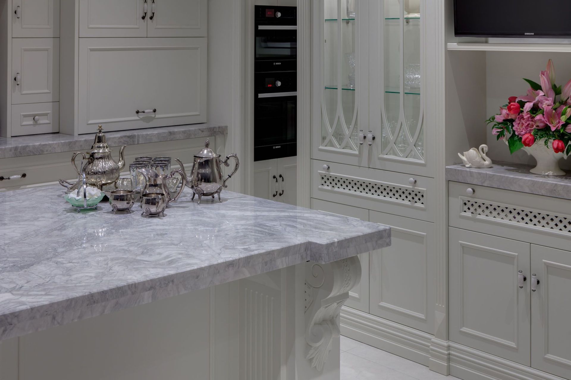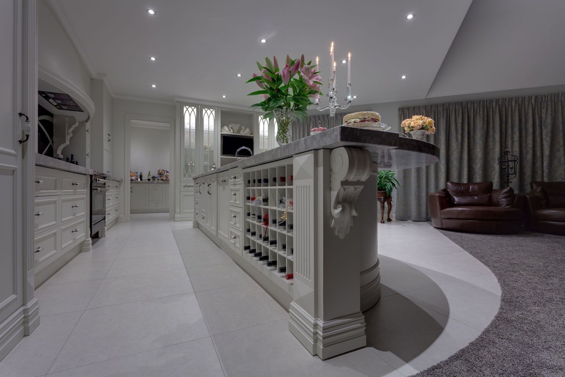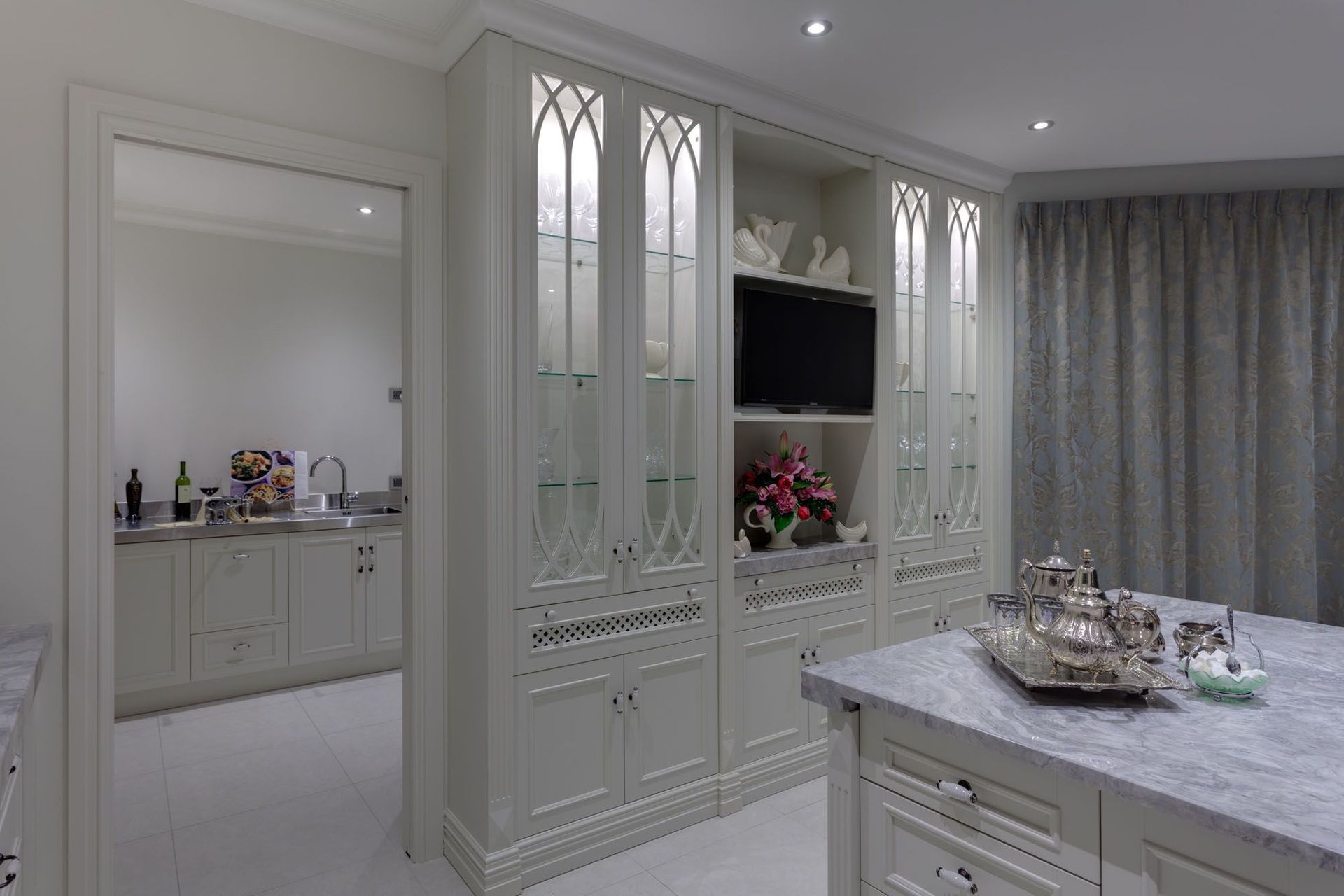 ArchiPro Project Summary - Award-winning kitchen featuring a blend of classical and gothic design elements, designed for entertaining with a spacious scullery and bespoke finishes, highlighted by a unique splashback and elegant curved features.