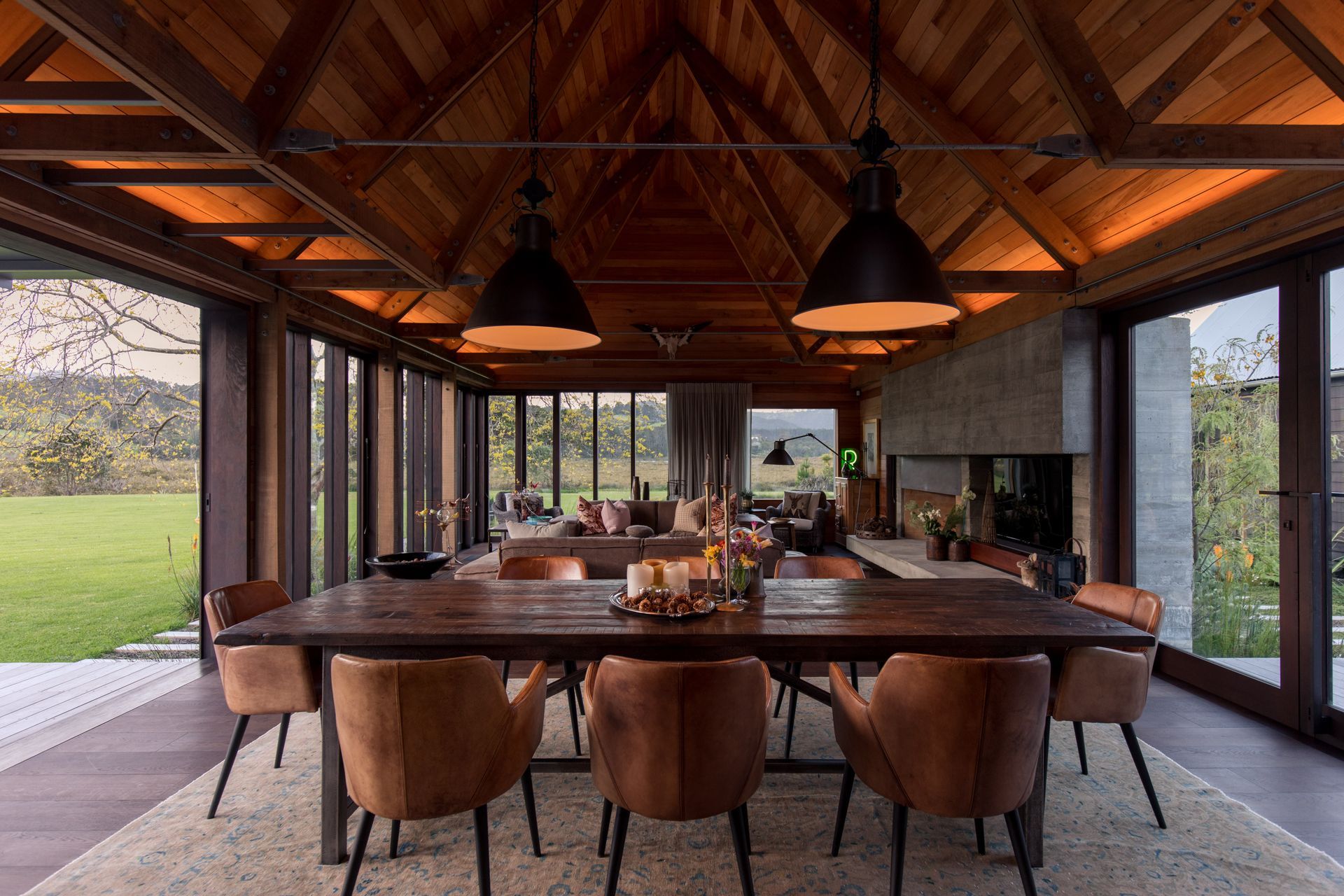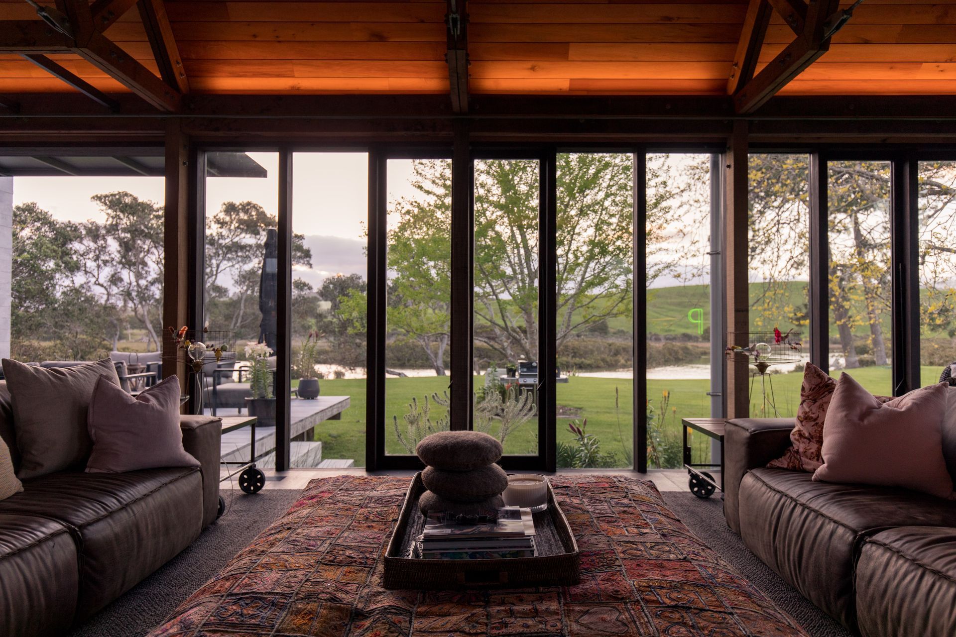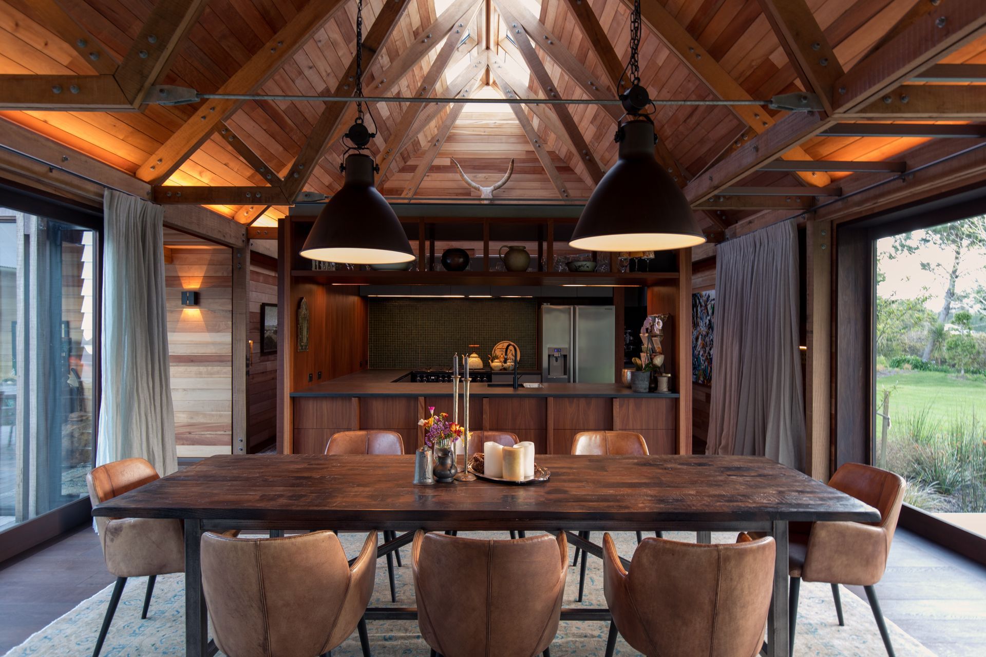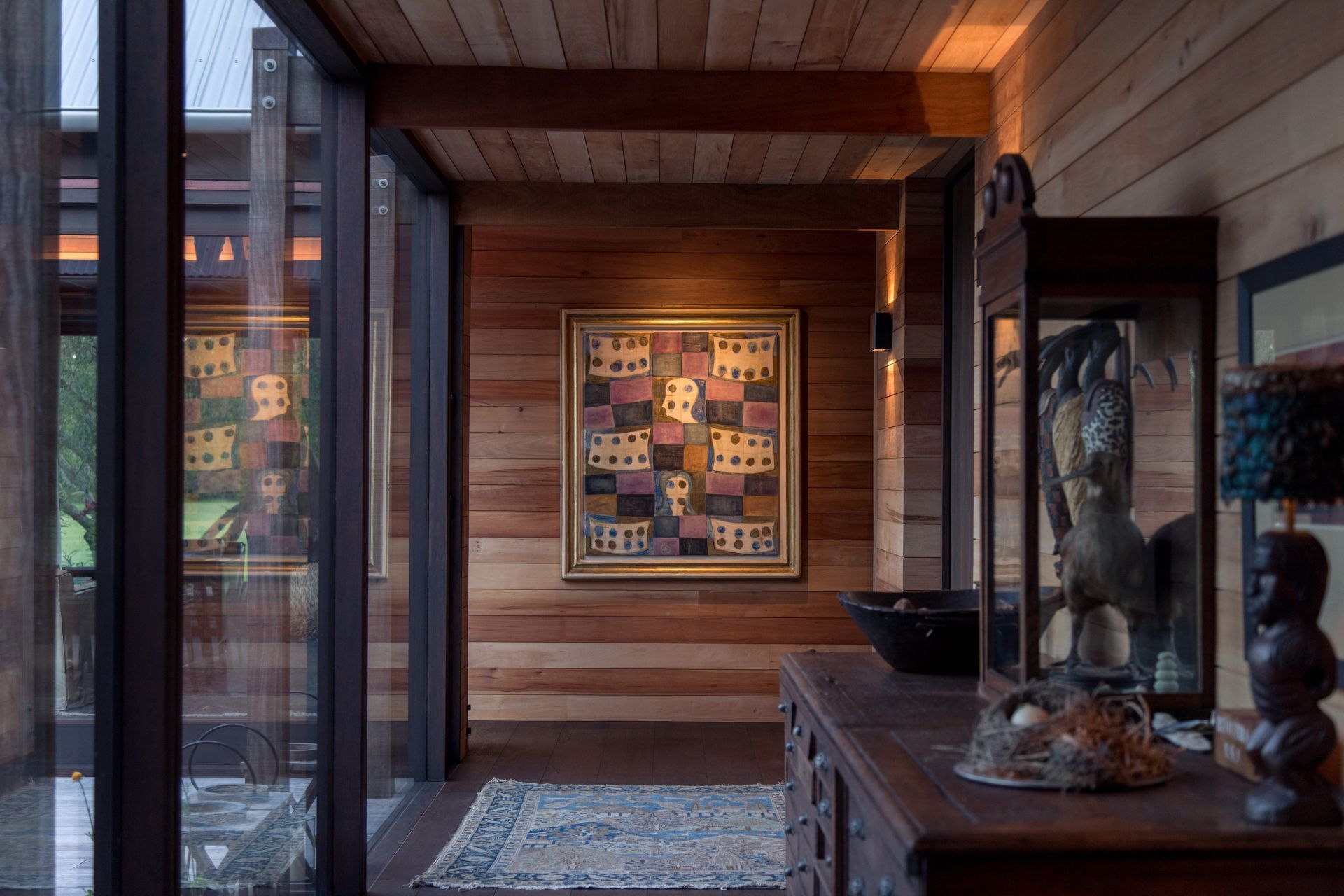 ArchiPro Project Summary - A beautifully crafted timber dwelling inspired by rural vernacular, featuring two distinct wings connected by an elongated boardwalk, creating a harmonious blend of indoor and outdoor spaces that embrace the natural surroundings of the Omaha River.