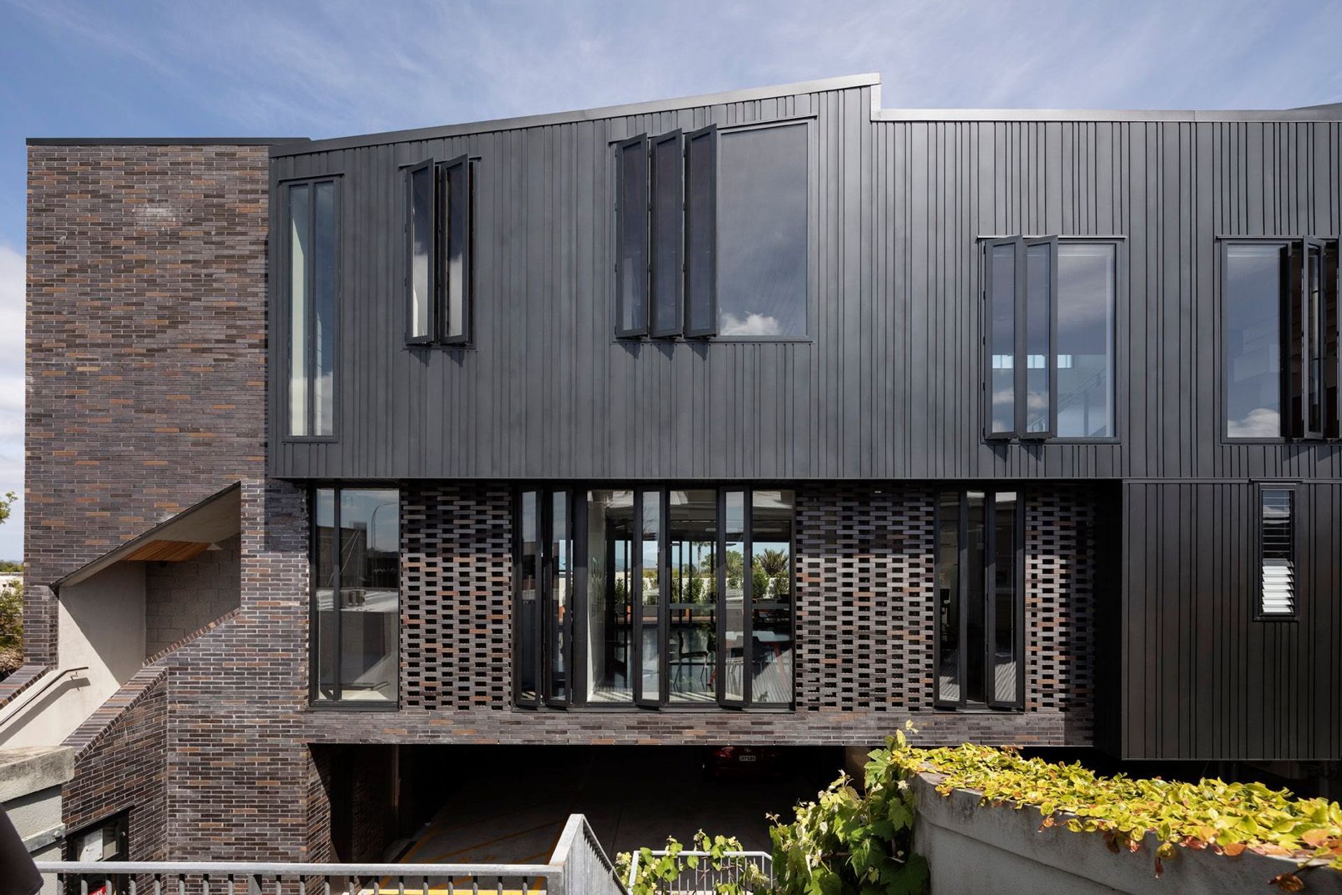 ArchiPro Project Summary - A striking industrial building on Ponsonby Road, Auckland, featuring a unique blend of glazed Roman blend bricks and aluminium cladding, designed by B/OS Architects and expertly constructed by Wilkran Construction, showcasing innovative craftsmanship and collaboration.