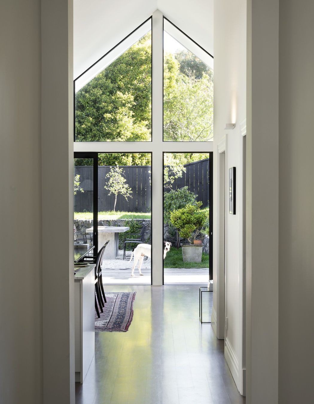 ArchiPro Project Summary - A striking gabled roof supported by a steel post enhances the existing home, creating a series of airy spaces that open up to a sunlit courtyard.