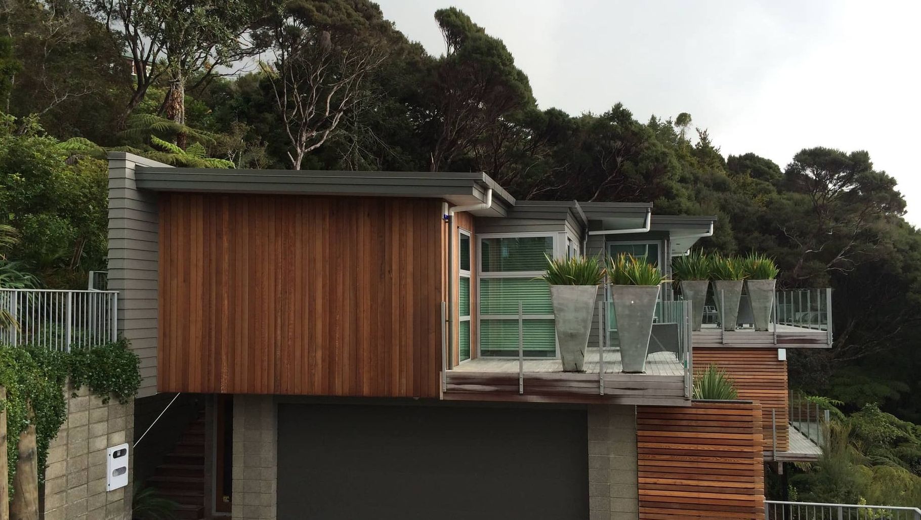 ArchiPro Project Summary - Luxurious beachside holiday home in the Bay of Islands, featuring contemporary design, stunning views, and practical solutions for hillside living.