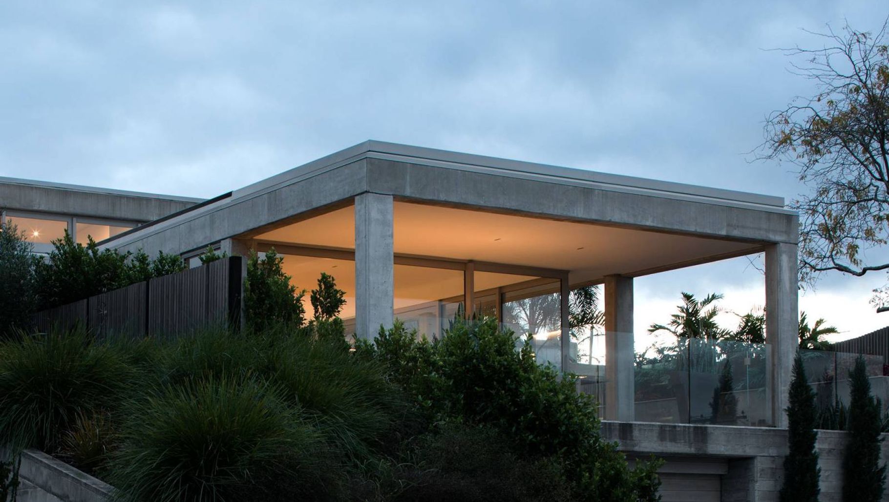 ArchiPro Project Summary - A striking poured concrete residence in Auckland's inner suburbs, featuring a raised platform for panoramic views and a seamless connection between indoor and outdoor living spaces.