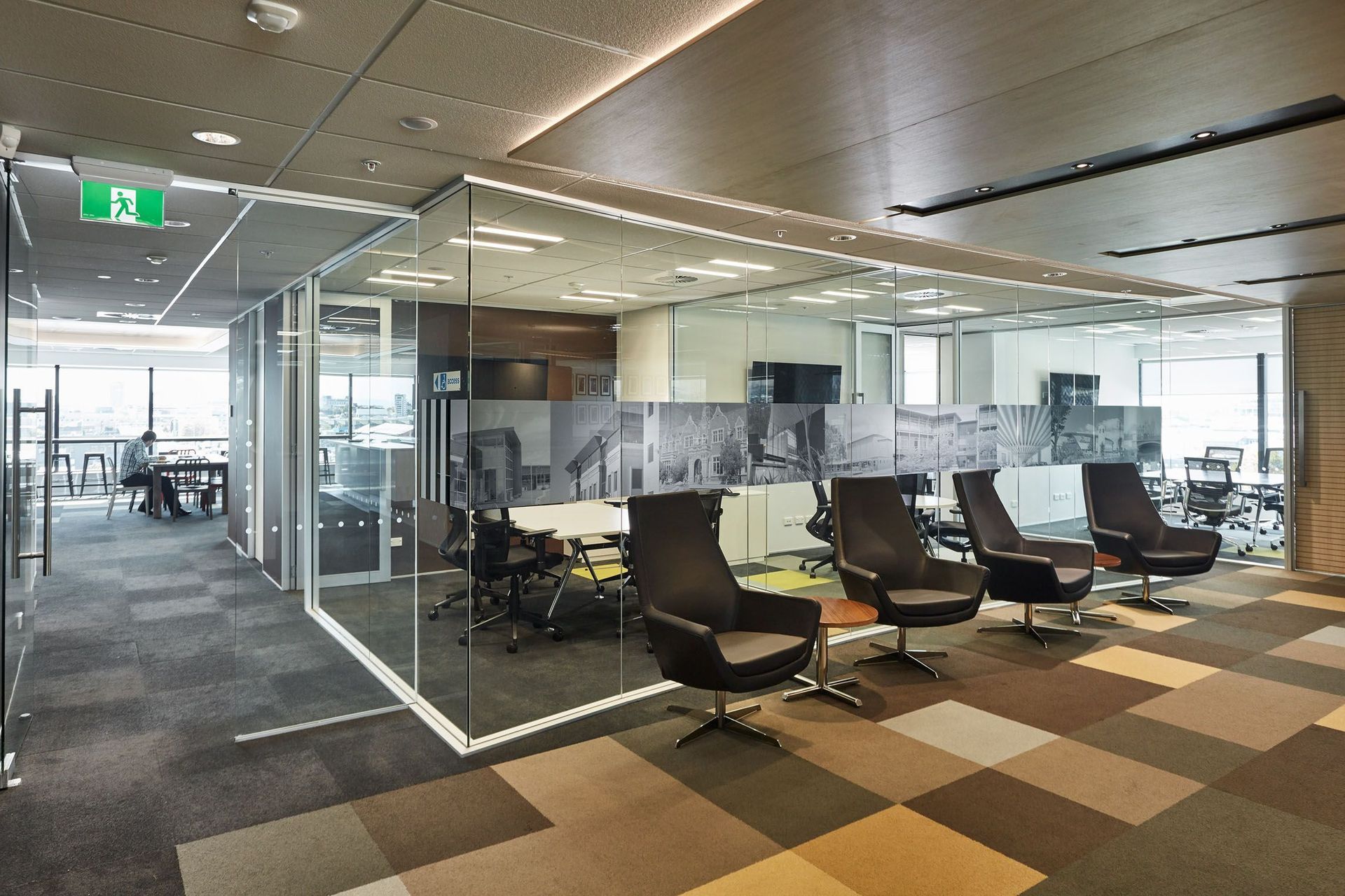 ArchiPro Project Summary - A collaborative and inviting workspace designed for Powell Fenwick, featuring a relaxed atmosphere and strategic layout elements that enhance connectivity and engagement throughout the environment.
