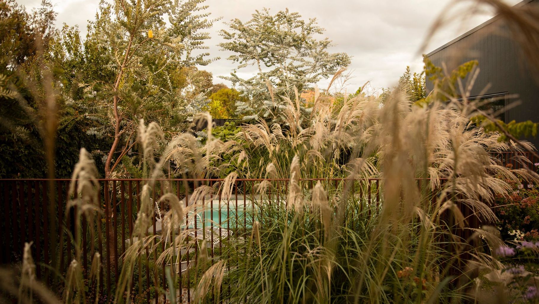 ArchiPro Project Summary - A vibrant garden and pool completed in 2023, featuring custom pathways, a music studio, and a modified pergola, designed to create a lush, established feel while allowing for future expansion.