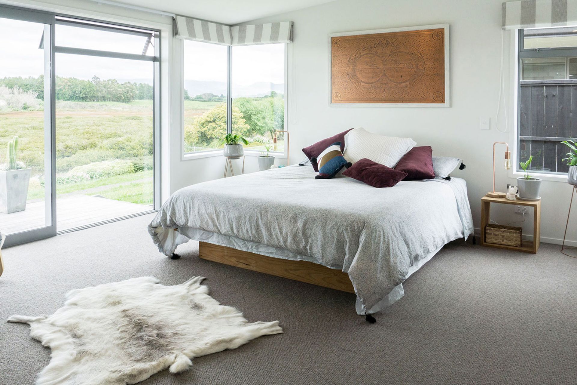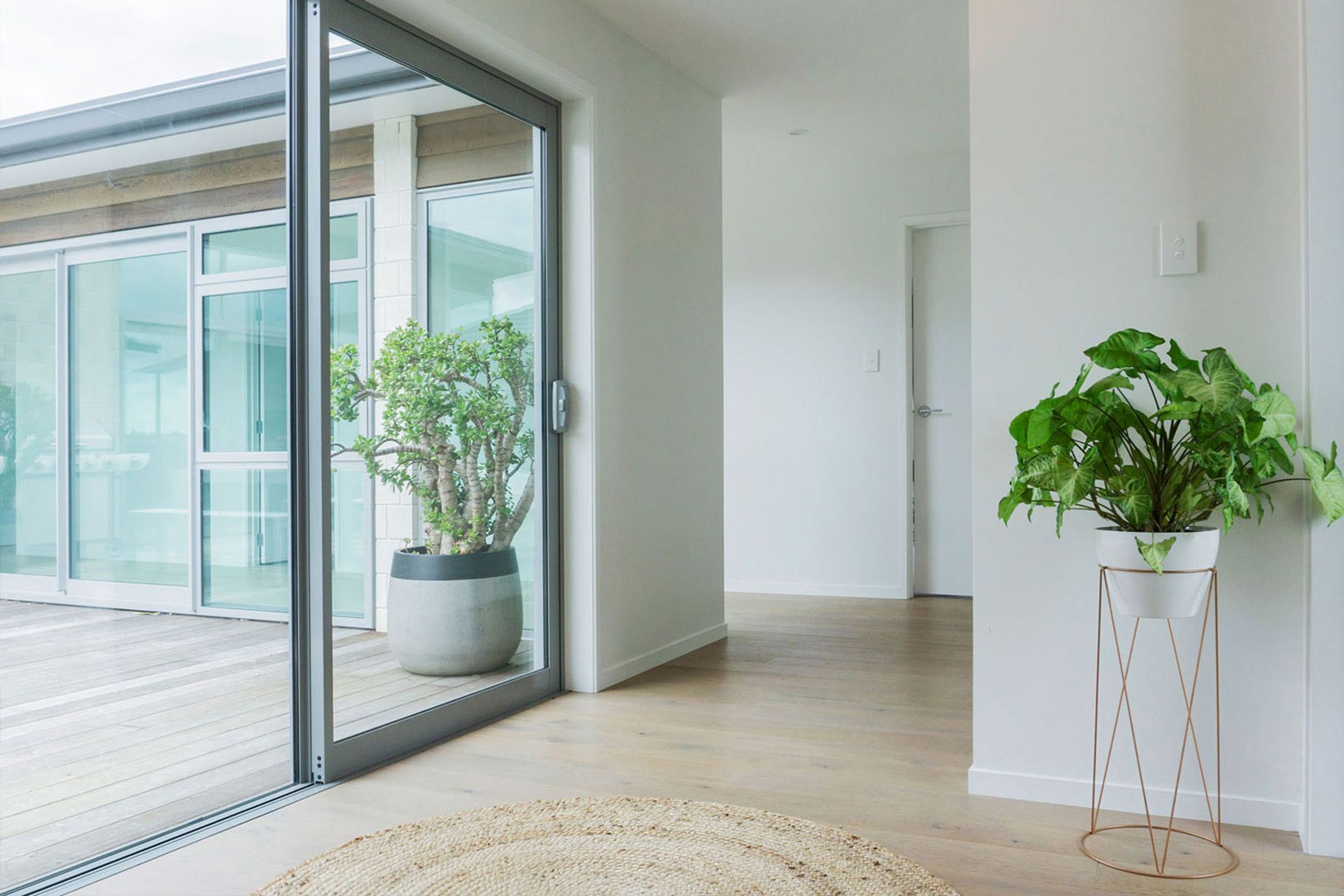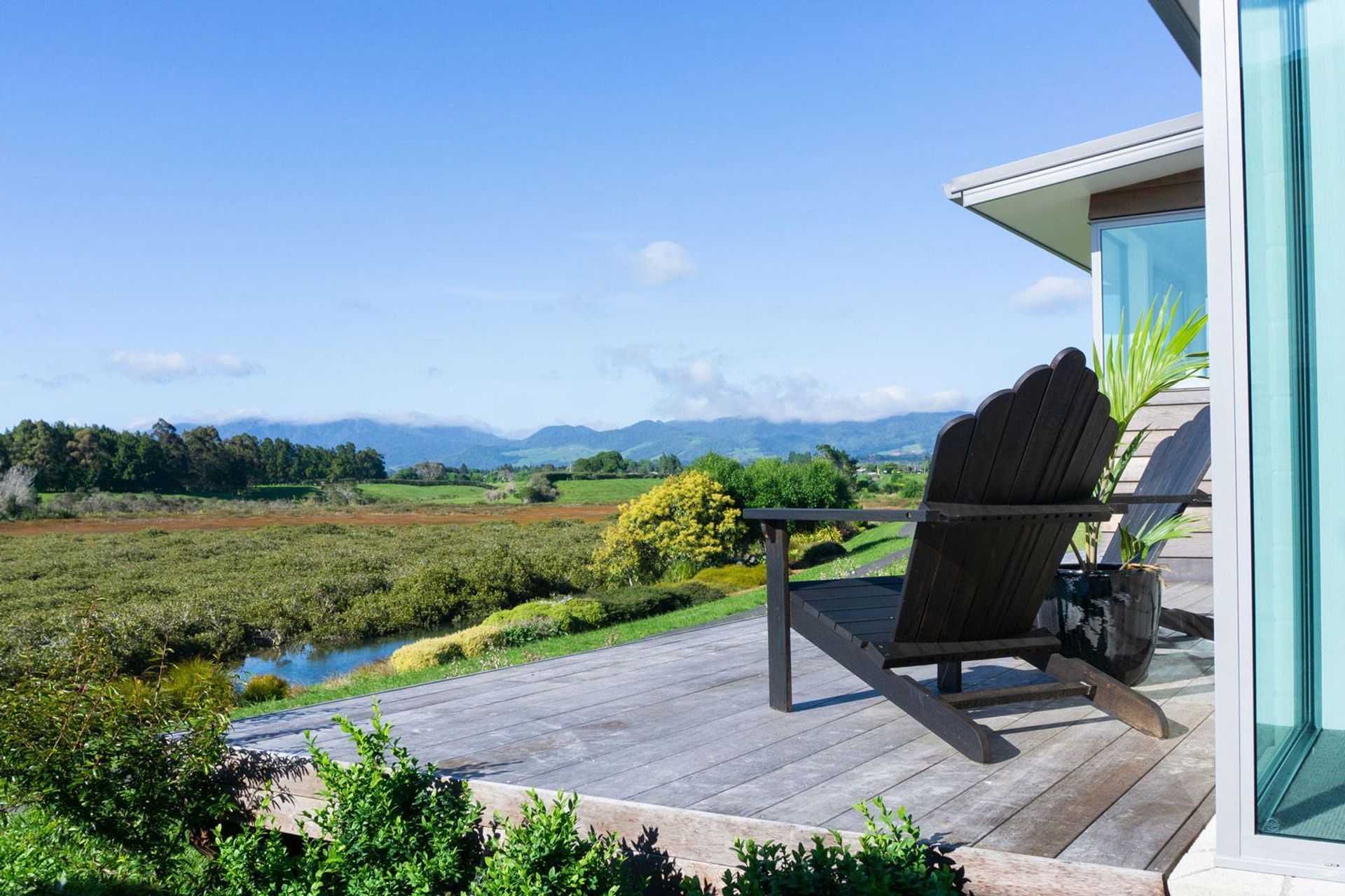 ArchiPro Project Summary - Coastal-inspired architectural home featuring 4 bedrooms, 3 bathrooms, and 2 car garaging, designed with high-stud ceilings and expansive blue-tint windows to enhance natural light and serene estuary views.