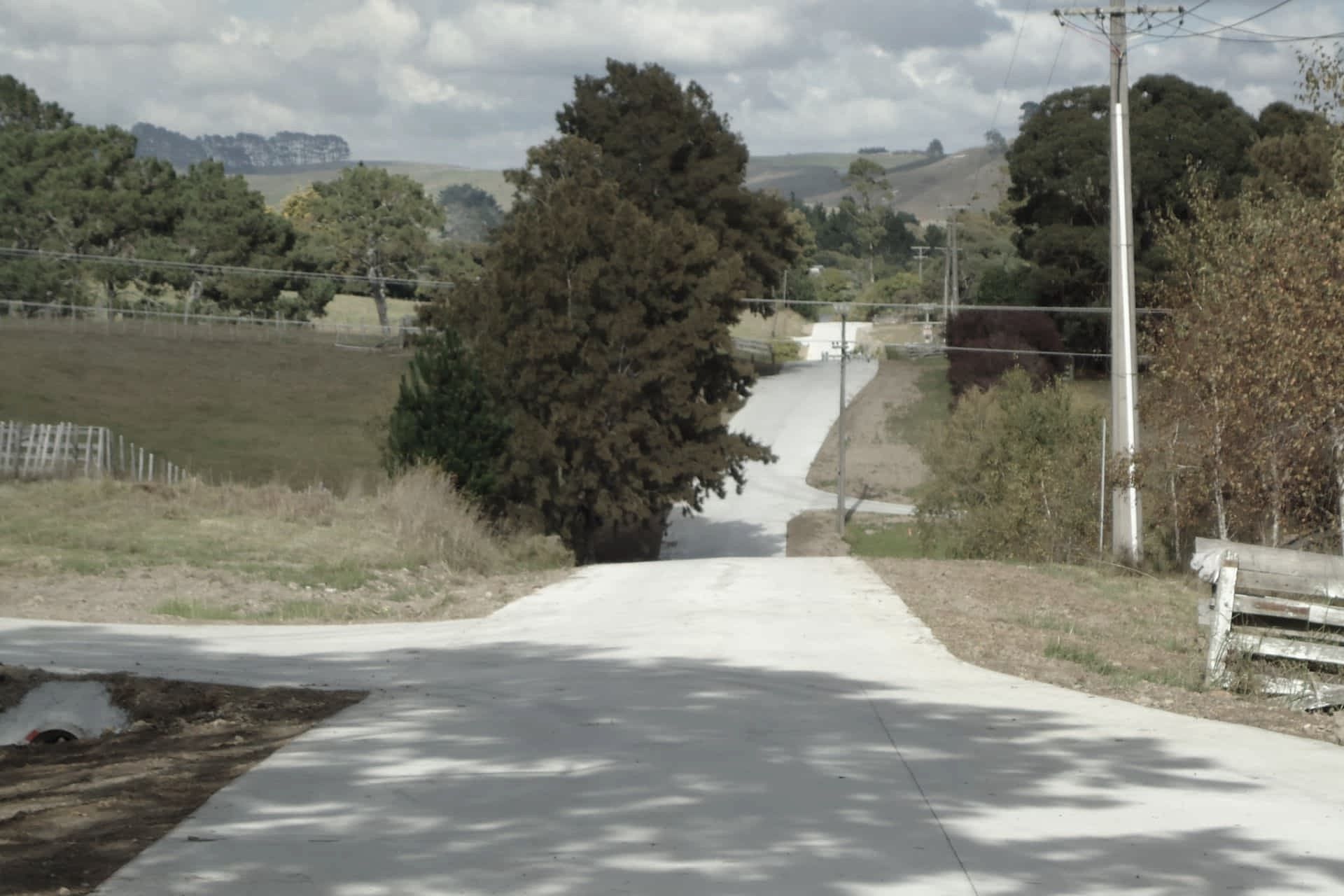 ArchiPro Project Summary - Construction of a durable concrete private road in Stillwater, Auckland, replacing an 800-meter gravel path to accommodate new residential developments, completed efficiently in a few weeks to minimize disruption for local residents.
