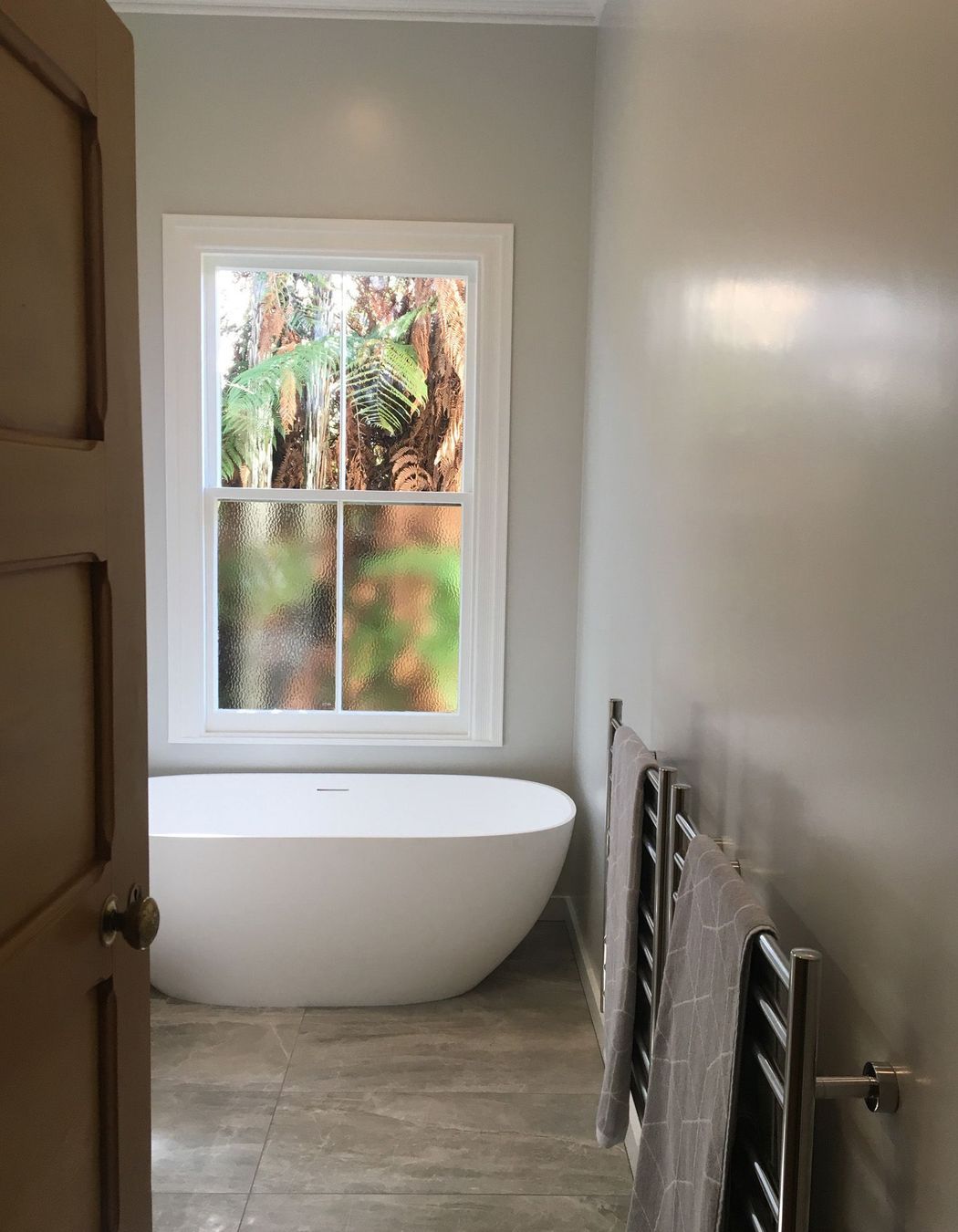 ArchiPro Project Summary - Complete renovation of main ensuite and master bathroom in a 1920's Greenwoods Corner home, featuring heated flooring, Italian ceramic tiles, St Michelle cabinetry, and premium tapware and lighting, ensuring a luxurious finish for the clients' home sale.