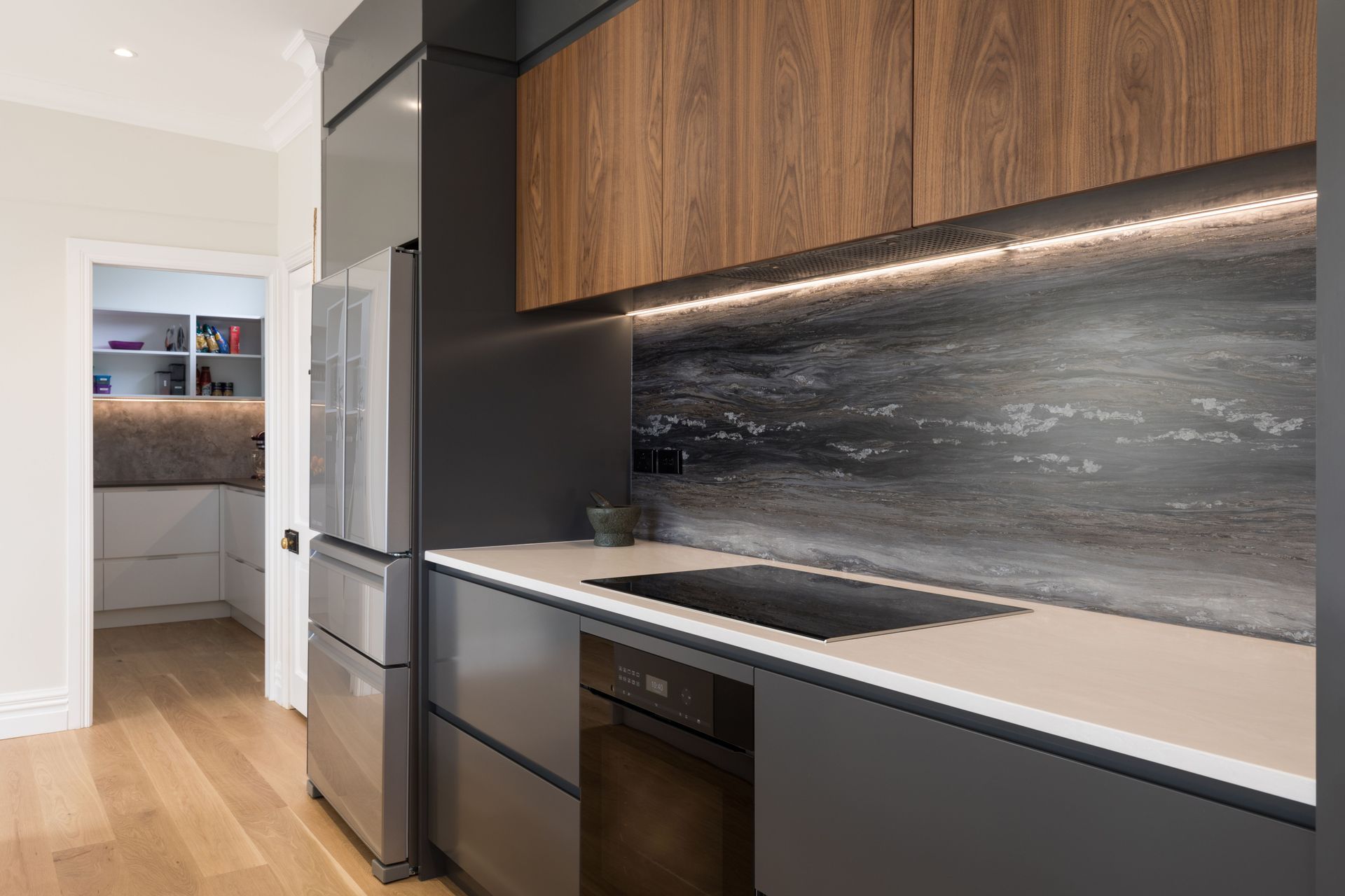 ArchiPro Project Summary - A classic kitchen transformation in a traditional family home, featuring a functional galley layout and a cozy warm color palette, revitalized by Nicola Manning Design in 2018.