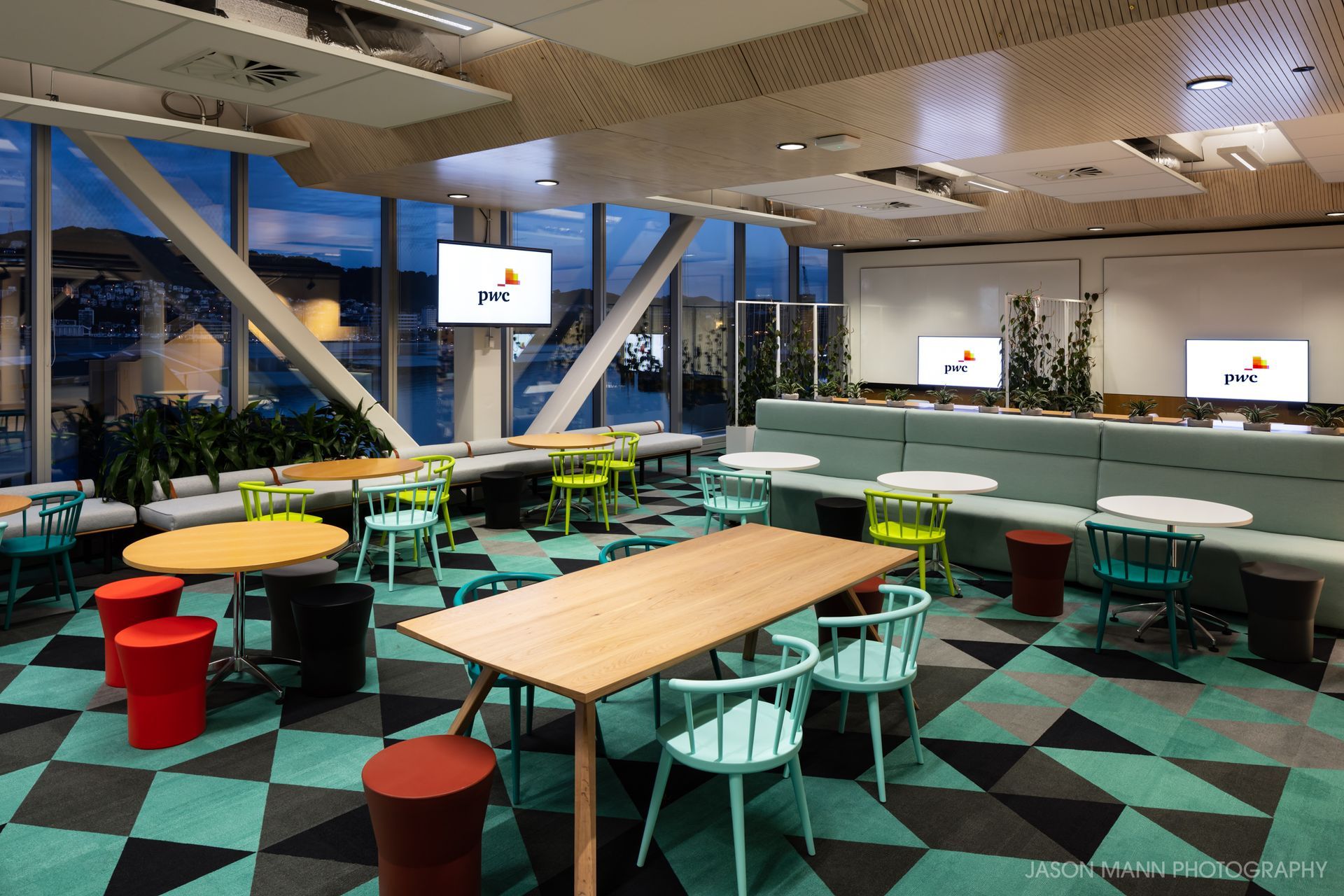 ArchiPro Project Summary - The PwC Wellington project features modern architecture, open workspaces, and sustainable practices, creating a collaborative environment for the financial services industry.