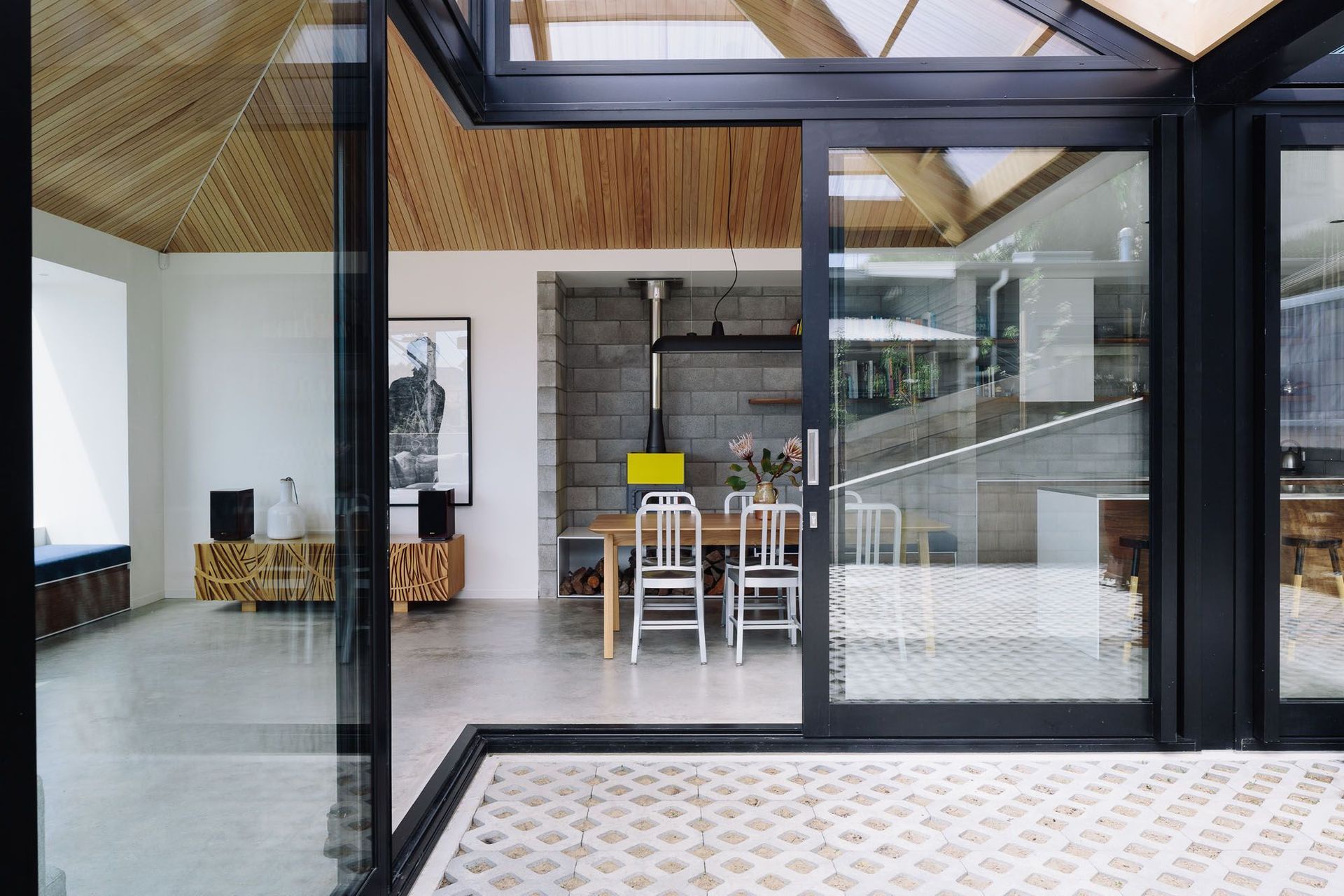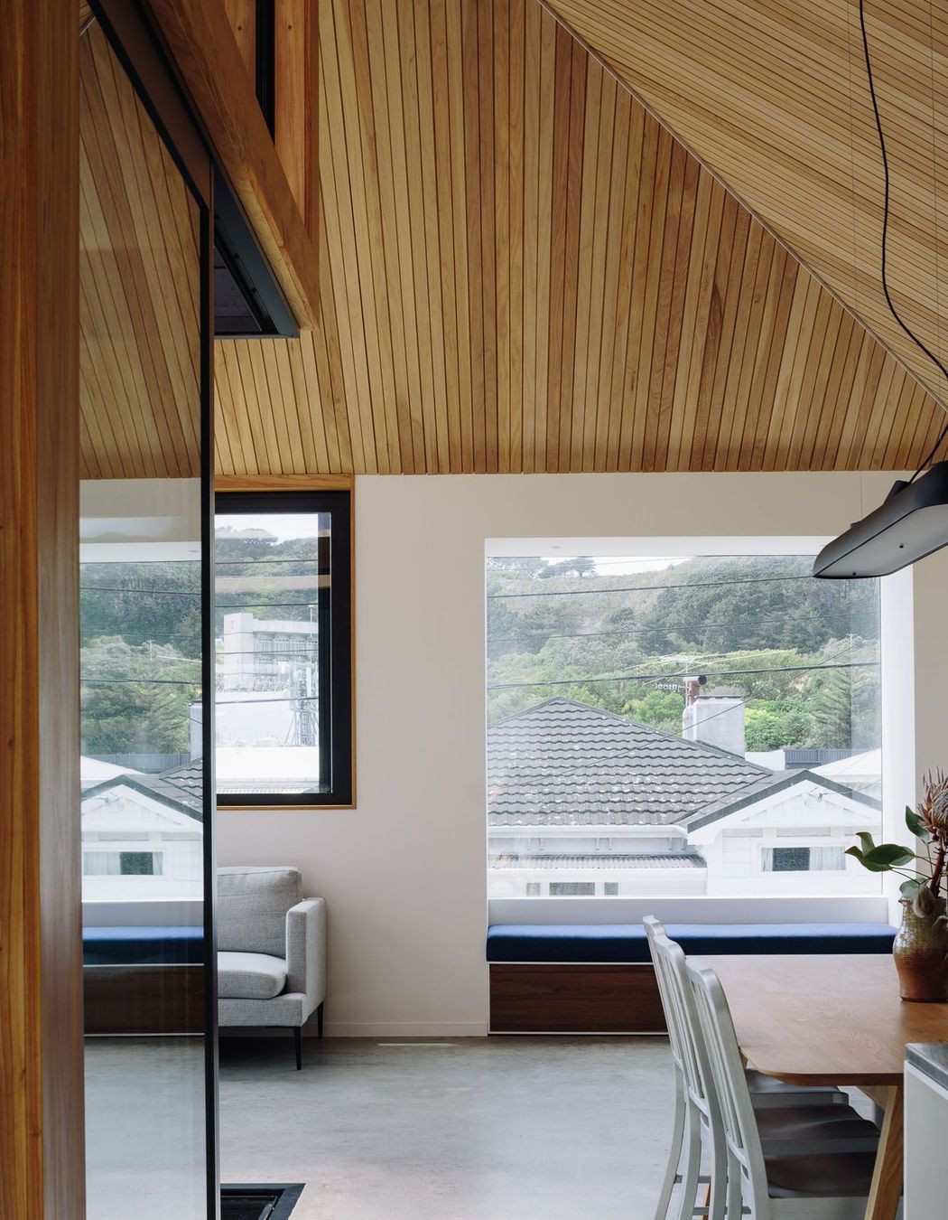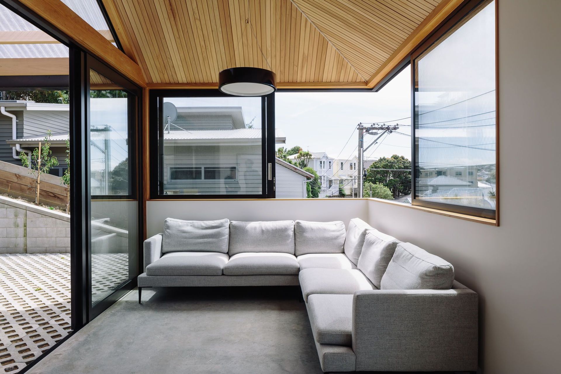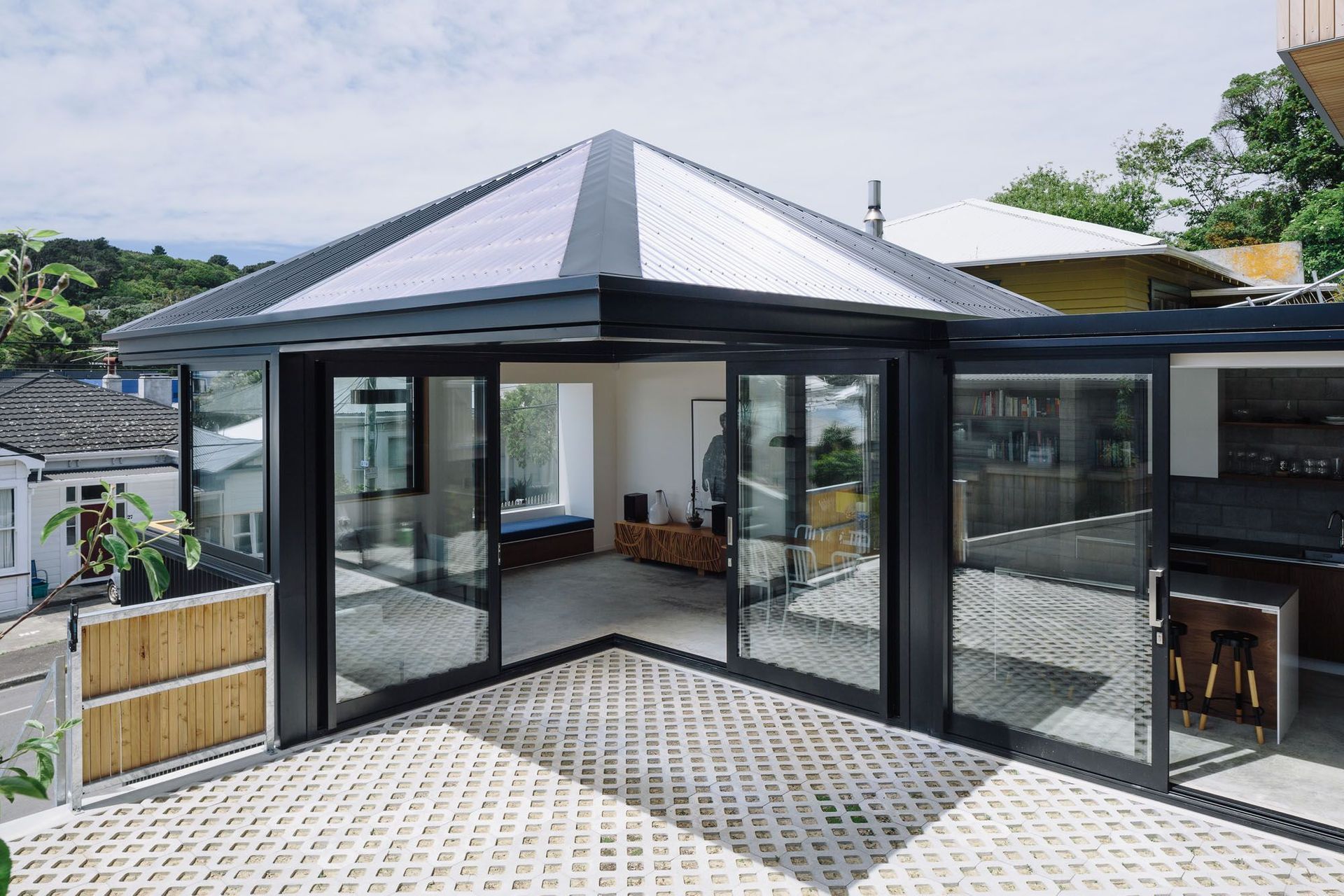 ArchiPro Project Summary - A contemporary family home featuring a unique pyramid design, nestled in Wellington's urban landscape, with a central courtyard, ample natural light, and innovative use of space across three internal levels.
