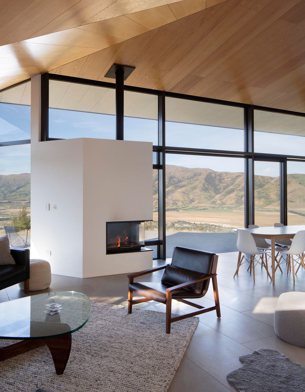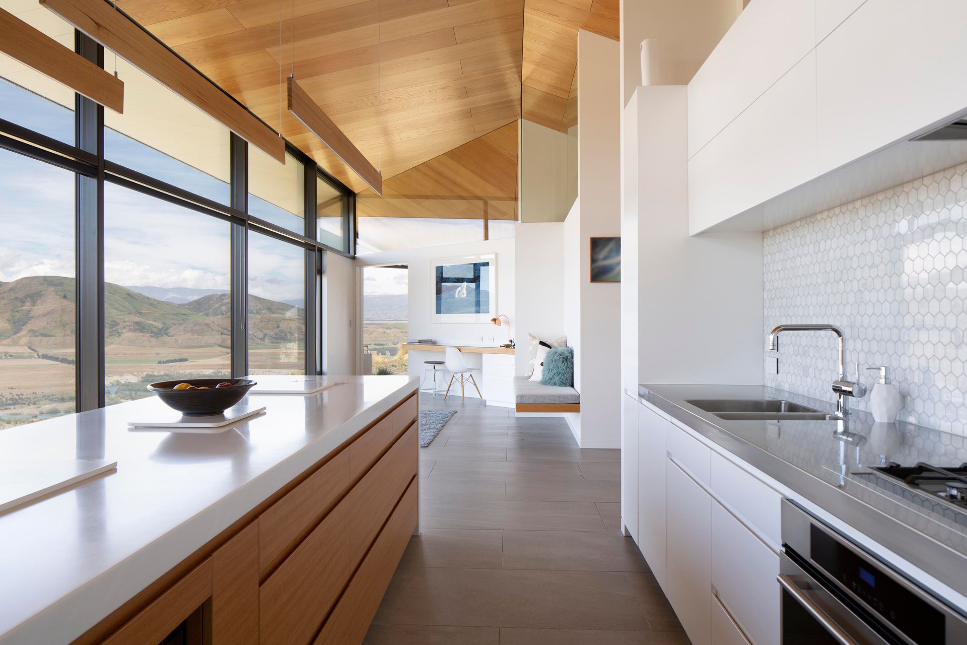 ArchiPro Project Summary - Rangi Kahu, a stunning architectural achievement by James Stockwell, is nestled in the foothills of Mt Pisa, offering breathtaking views of the Grandview Ranges and Clutha River, and celebrated for its innovative design inspired by the Miura fold.
